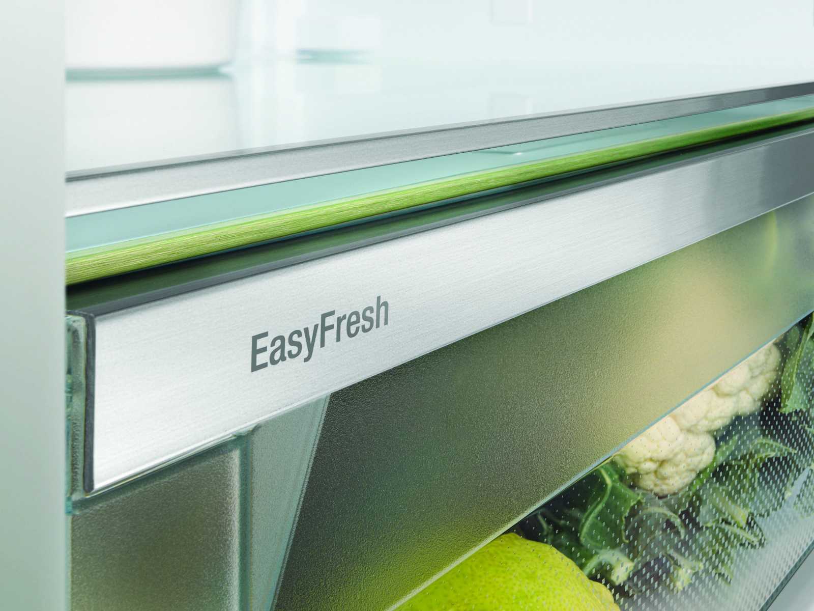 З площиною в **383 літра**, з яких **266 літрів** у холодильній камері і **94 літри** у морозильній, Liebherr CNbef 5723 Plus забезпечує достатньо місця для зберігання всіх ваших харчових запасів. Водночас **EasyFresh** зберігає свіжість овочів і фруктів завдяки оптимальному режиму вологості.