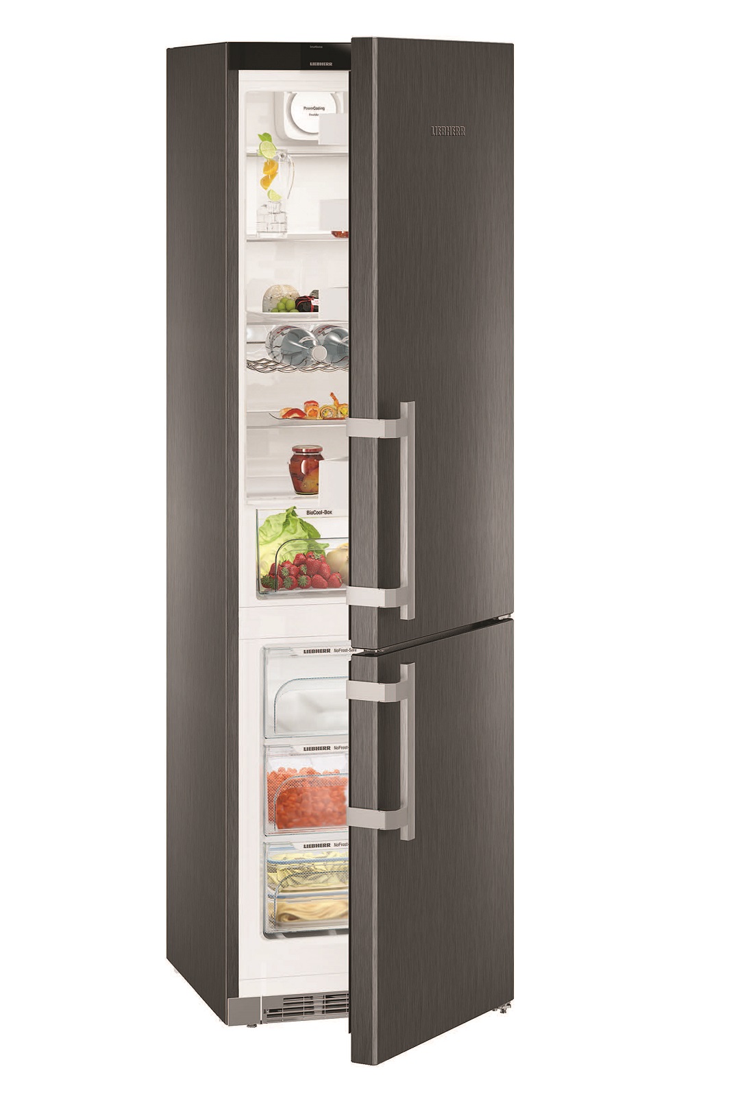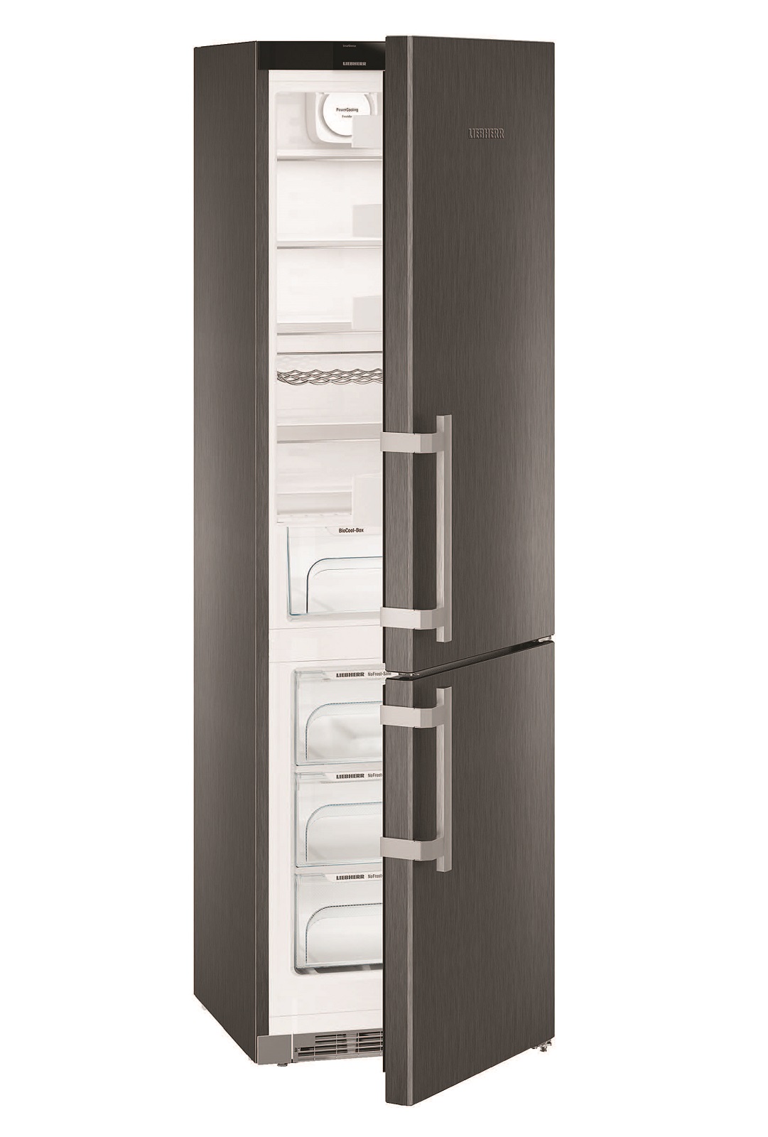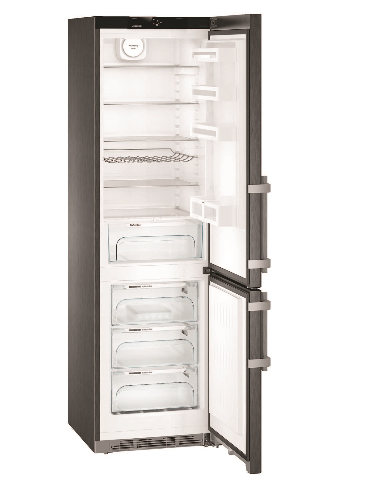 Холодильник Liebherr CNbs 4835 – це ідеальний вибір для сучасної кухні. З висотою 201 см, шириною 60 см і глибиною 66.5 см, він вирізняється стильним чорним кольором та елегантними дверцятами з нержавіючої сталі з покриттям SmartSteel, яке стійке до відбитків. Ця модель належить до покоління BluPerformance та має клас енергоспоживання A++, що забезпечує високу ефективність роботи з енергоспоживанням всього 260 кВт/год на рік.