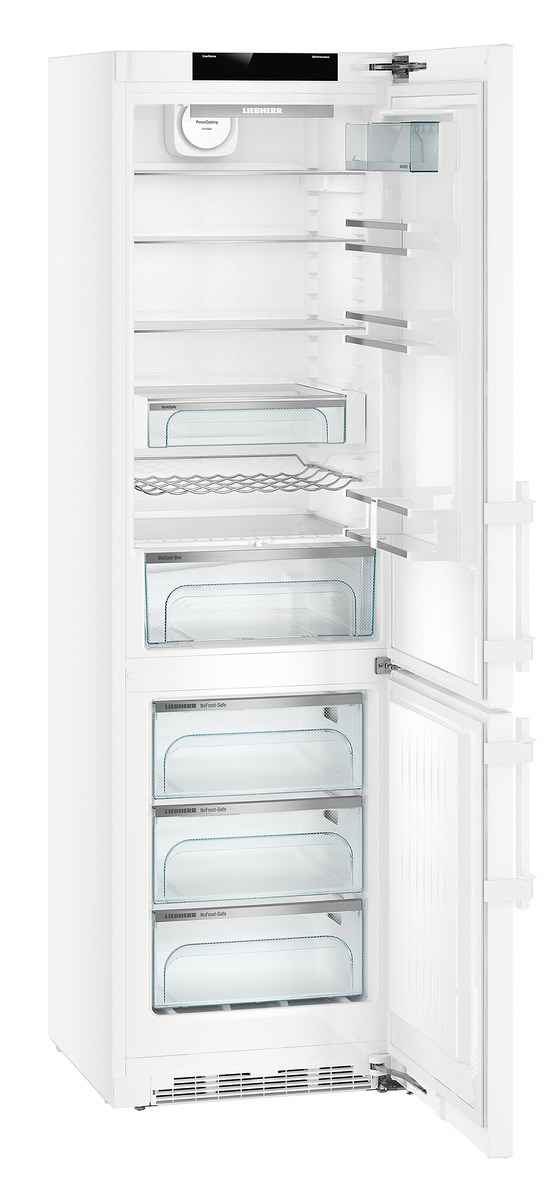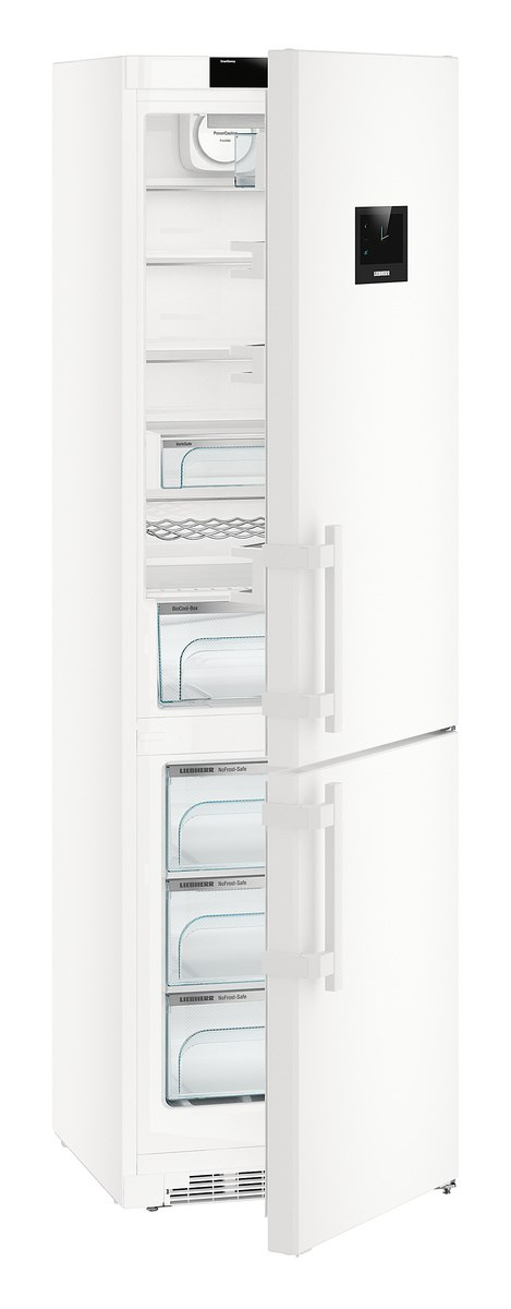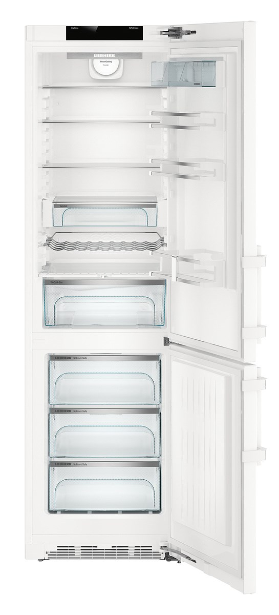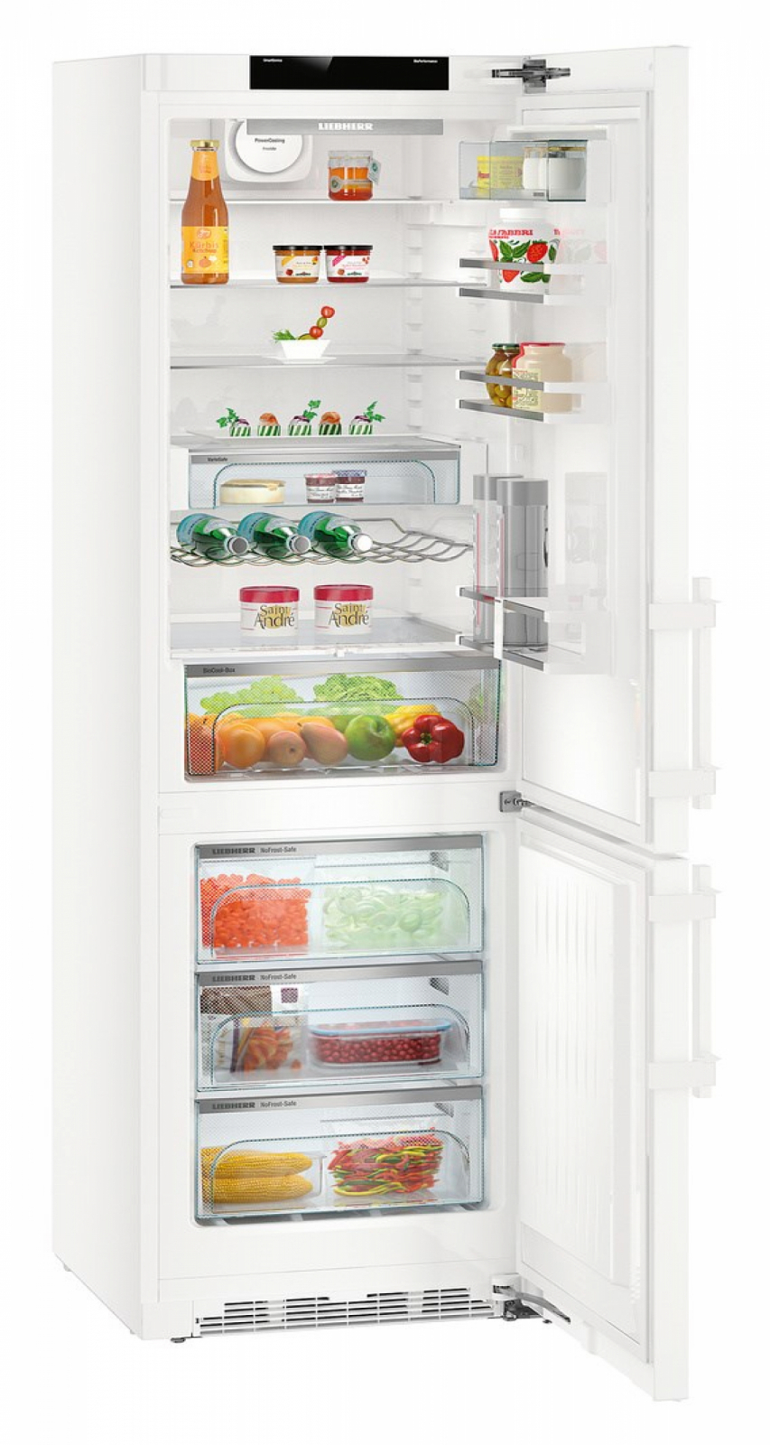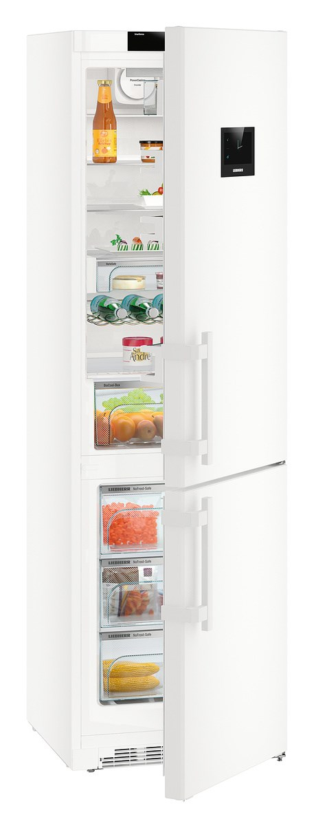 Холодильник Liebherr CNP 4858 - це двохкамерна модель з потужними функціями для збереження продуктів. Він оснащений технологією NoFrost, що запобігає утворенню льоду в морозильній камері, та DuoCooling, яка дозволяє незалежне регулювання температури в холодильній та морозильній камерах. Загальний об’єм холодильника становить 391 л, з яких 260 л - це холодильна камера, а 101 л - морозильна.