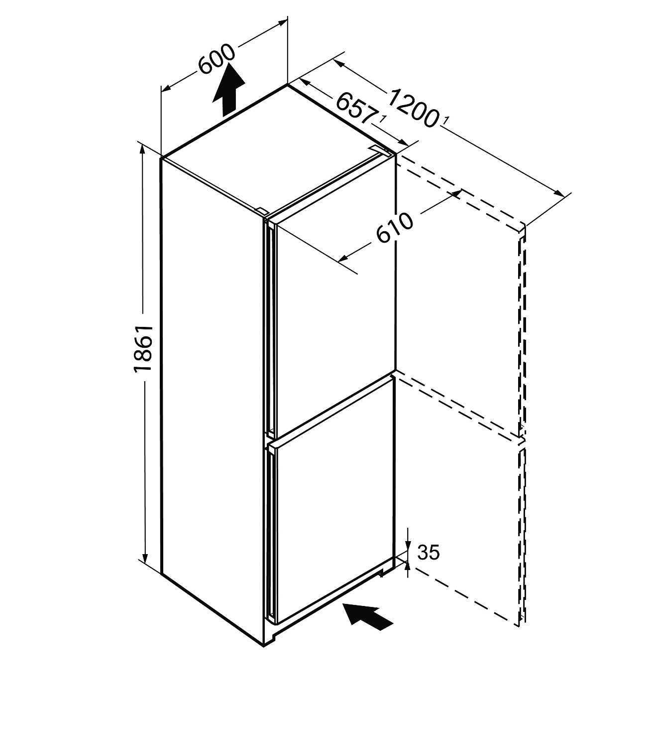 Висота 186.1 см, ширина 60 см та глибина 65.7 см роблять цей холодильник ідеальним для будь-якої кухні. Цифрові індикатори температури допомагають контролювати стан продуктів, а вбудована сигналізація відкритих дверей запобігає втраті холодоагенту.