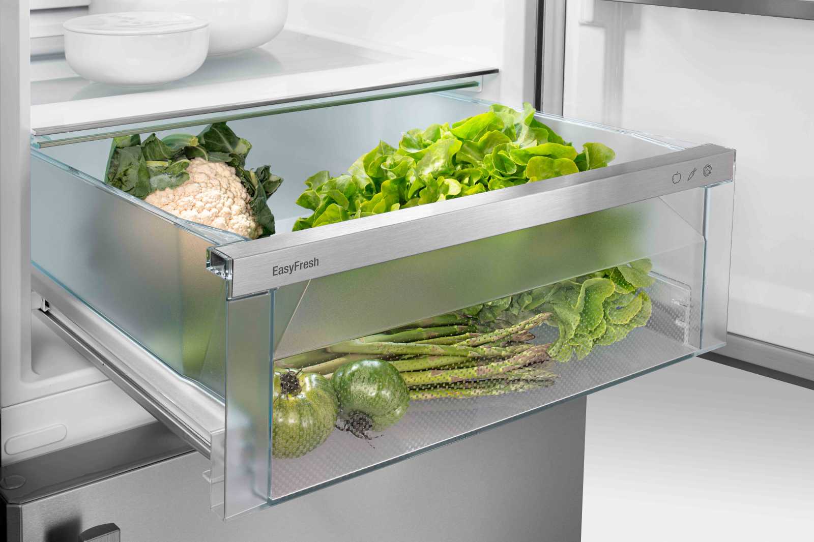 Холодильник оснащений системою FrostControl, що попереджає про некоректну роботу. Також у ньому реалізовані такі функції, як SuperCool і SuperFrost для швидкого охолодження, а EasyFresh дозволяє зберігати овочі та фрукти у оптимальних умовах. Варіативність поличок (6 регульованих, 1 складна) та VarioSpace роблять використання холодильника максимально зручним.