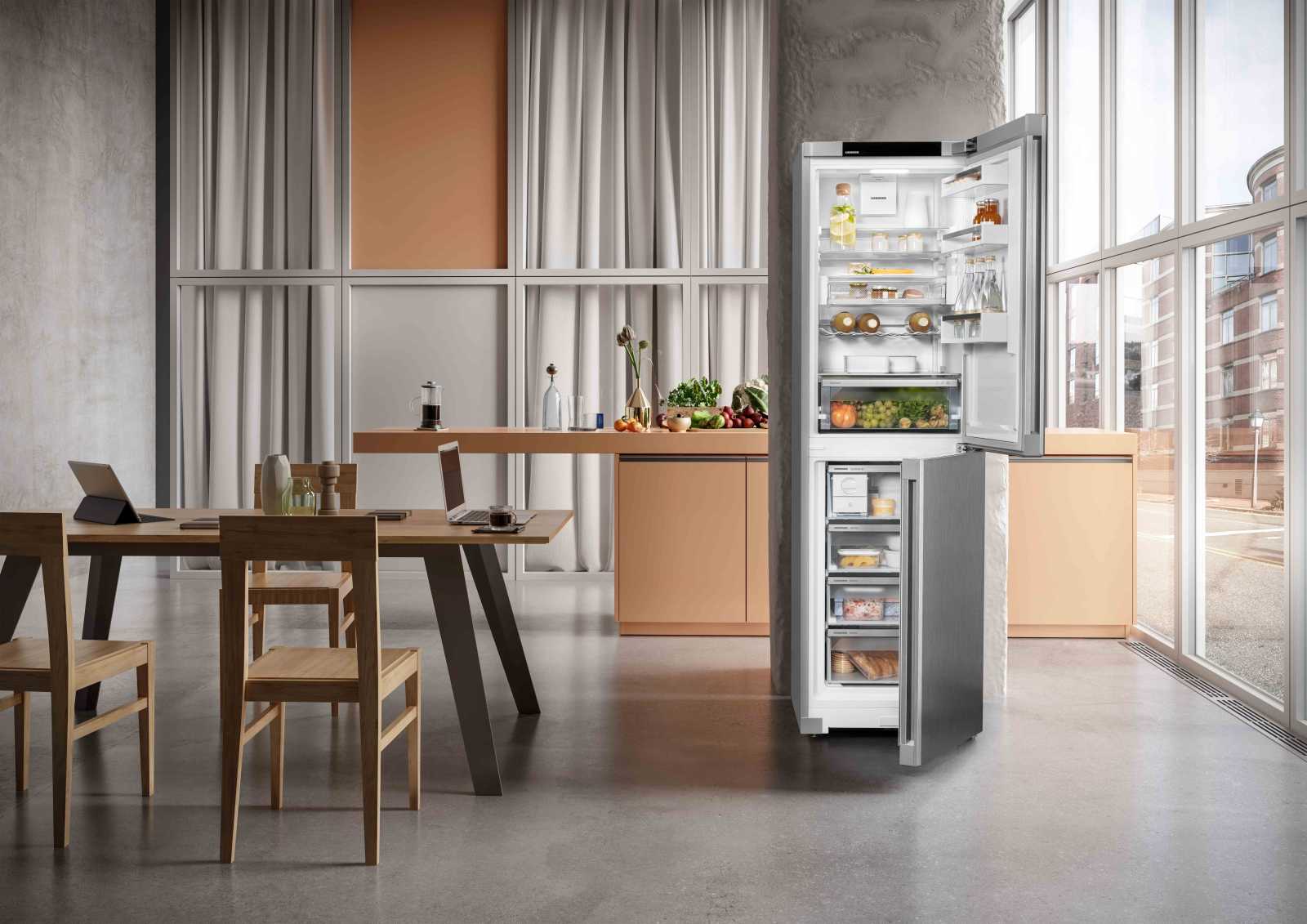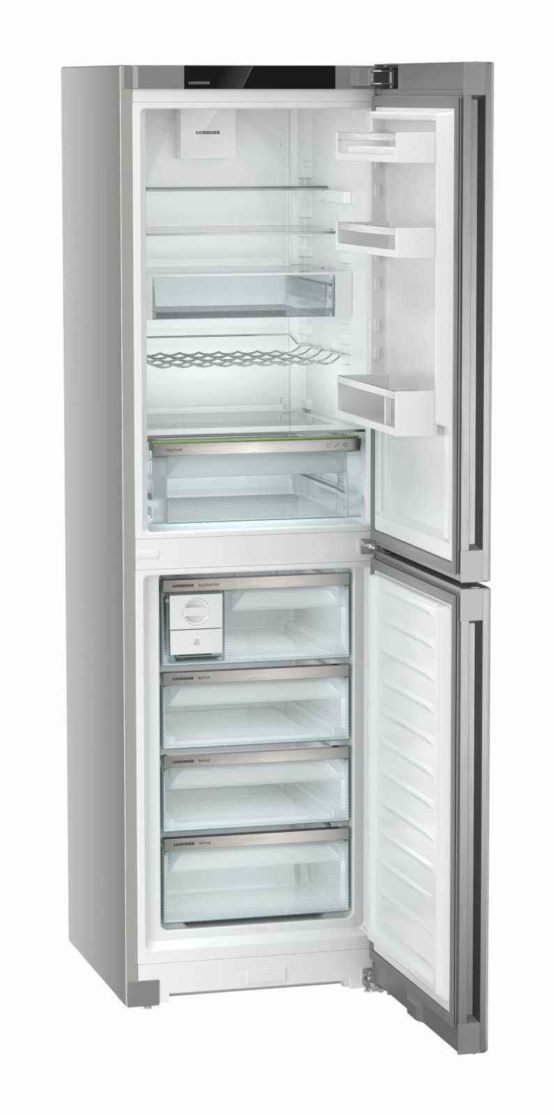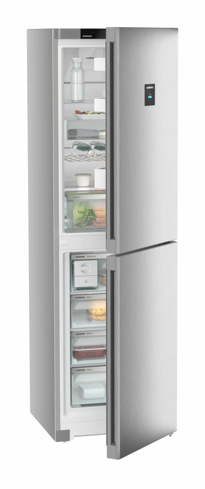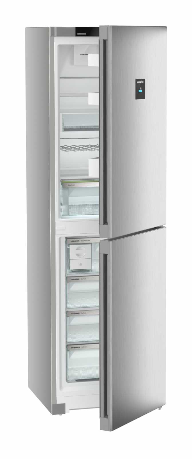 Із загальним об'ємом 383 літри та корисним об'ємом 348 літрів, Liebherr CNsfd 573i Plus оснащений **двоїстим охолодженням DuoCooling**, що дозволяє незалежно регулювати температуру в холодильній та морозильній камерах. **EasyFresh** допоможе зберегти овочі й фрукти свіжими, а функція **SuperCool** швидко охолоджує продукти після покупки.