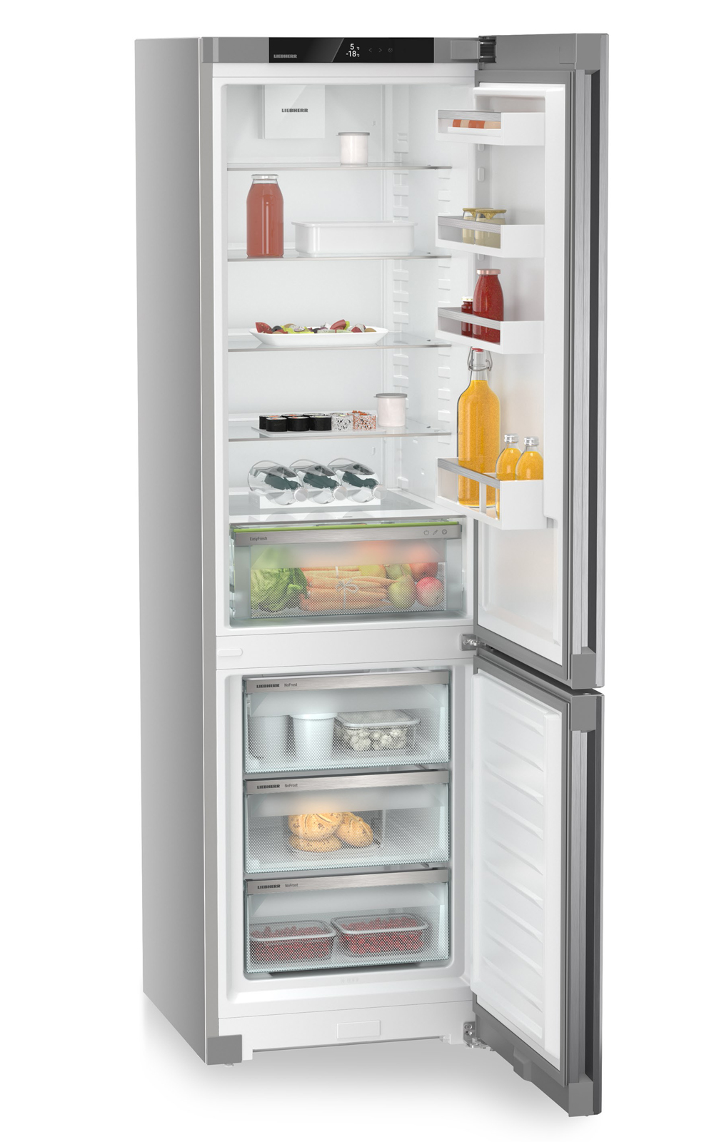 Цей холодильник обладнаний інноваційними технологіями, такими як NoFrost для автоматичного розморожування та DuoCooling, що дозволяє підтримувати оптимальний рівень вологості безперешкодно для холодильного і морозильного відділів. Корисний об'єм складає 360 л, включаючи 266 л для холодильника та 94 л для морозильної камери. Особливістю є система VarioSpace, що дозволяє легко регулювати простір всередині морозильника.