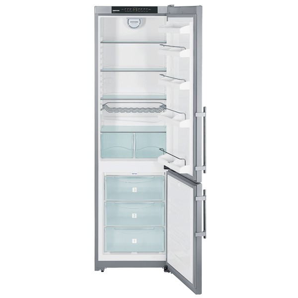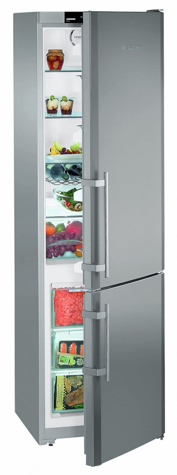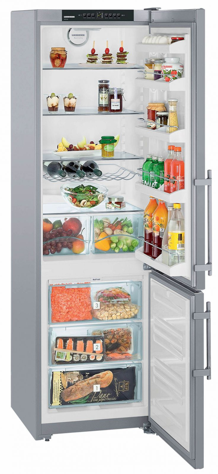 Холодильник Liebherr CNsl 4003 — це ідеальний вибір для сучасної кухні. Ця модель має **двохкамерну конфігурацію** і забезпечує оптимальні умови зберігання продуктів завдяки технологіям **DuoCooling** та **NoFrost**, які запобігають утворенню льоду. Внутрішній об’єм холодильника складає **398 л**, з корисною ємністю в **364 л**, що дозволяє зберігати велику кількість продуктів.