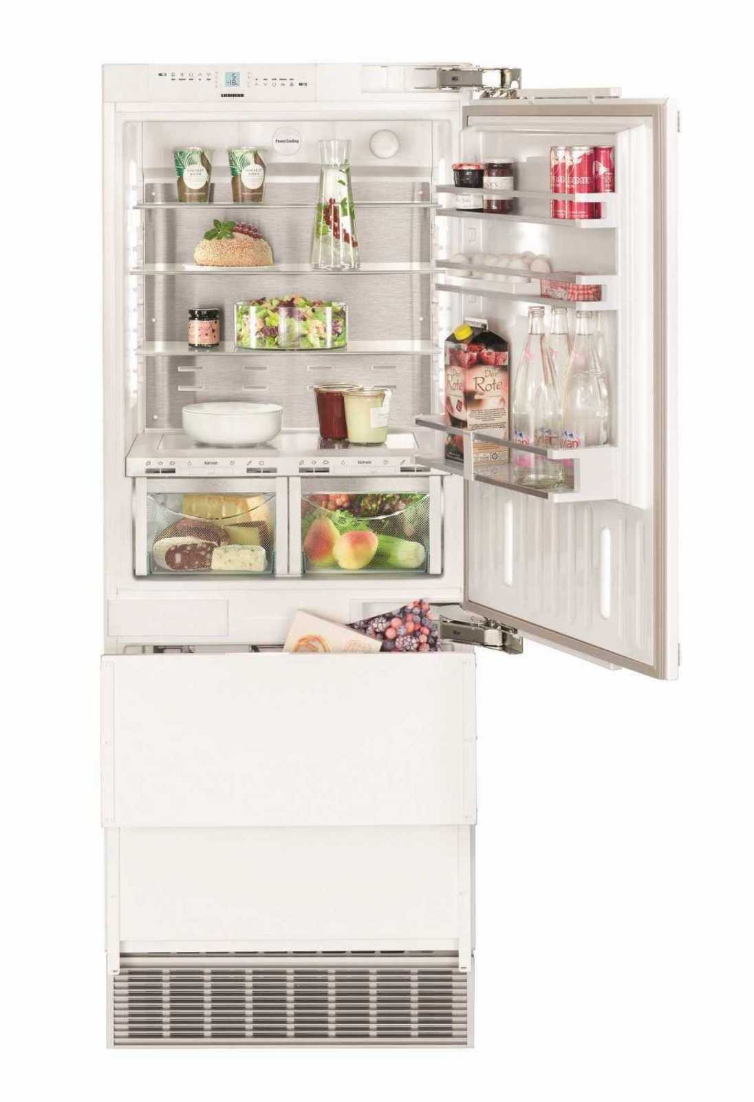 Холодильник Liebherr ECBN 5066 — це вбудовувана двокамерна модель, яка забезпечує надійне зберігання продуктів завдяки інноваційним технологіям. Однією з основних особливостей є система NoFrost, яка запобігає утворенню льоду, а також BioFresh, що дозволяє тривало зберігати свіжість продуктів. Об'єм холодильника складає 462 літри, включаючи 276 літрів холодильної камери та 103 літри морозильної камери.
