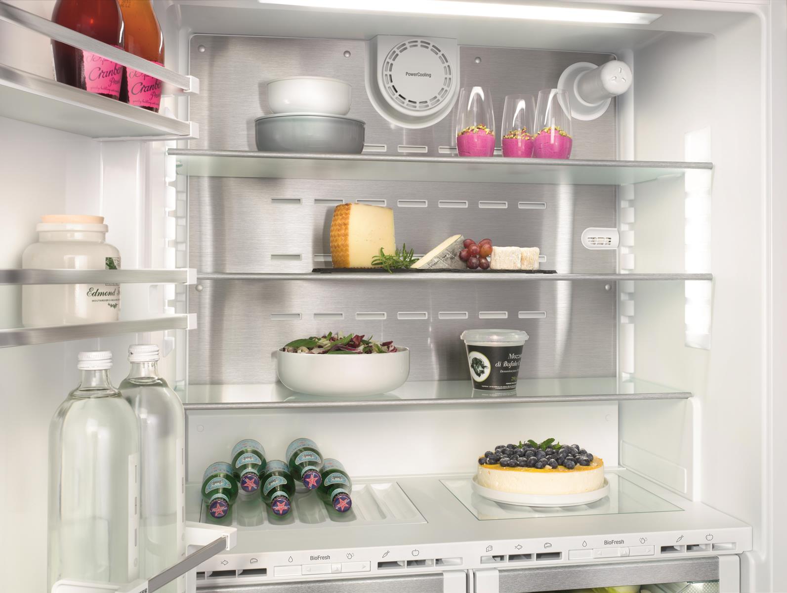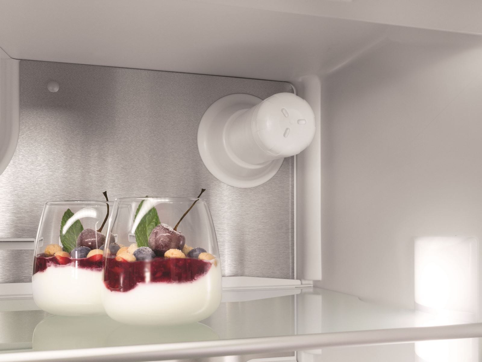 Модель обладнана IceMaker, що забезпечує щоденну продуктивність 1.3 кг льоду, і SuperCool, що дозволяє швидко охолоджувати великі обсяги продуктів. Система DuoCooling контролює вологість у двох камерах, запобігаючи змішуванню запахів. У холодильнику також реалізовані функції FrostControl і SuperFrost, що підвищують комфорт експлуатації.