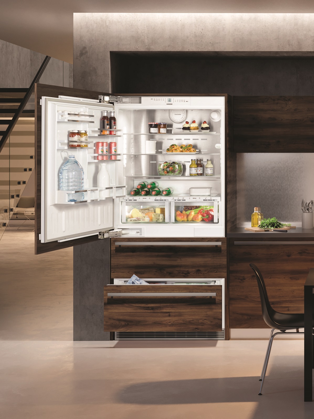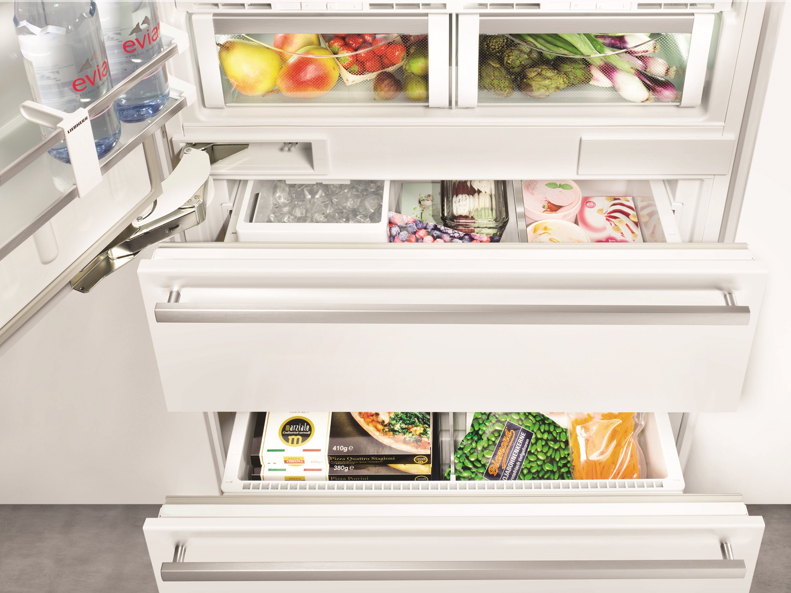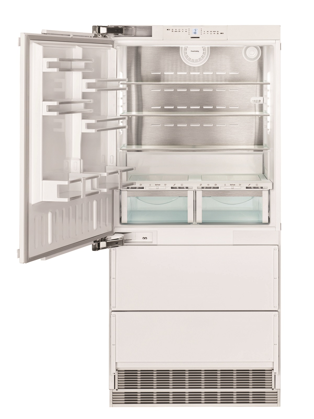 Представляємо вам встраиваемий двокамерний холодильник Liebherr ECBN 6156 617, що поєднує сучасний дизайн і безліч корисних функцій. З висотою 202.7 см і шириною 91 см, цей холодильник ідеально підходить для великих кухонь. Його об'єм складає 585 літрів, з яких 289 літрів відведено для холодильного відділення, а 114 літрів — для морозильного.