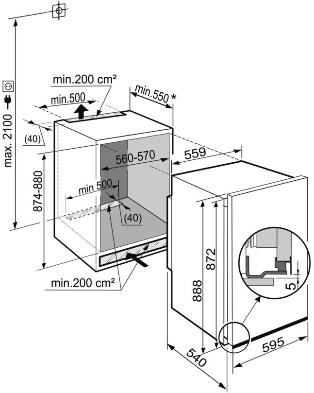Знайомтеся з вбудованим однокамерним холодильником Liebherr EK 1610 – ідеальним вибором для компактних кухонь. Його висота складає 88 см, ширина - 55.9 см, а глибина - 54 см, що дозволяє бездоганно вписатися в інтер'єр вашого дому.