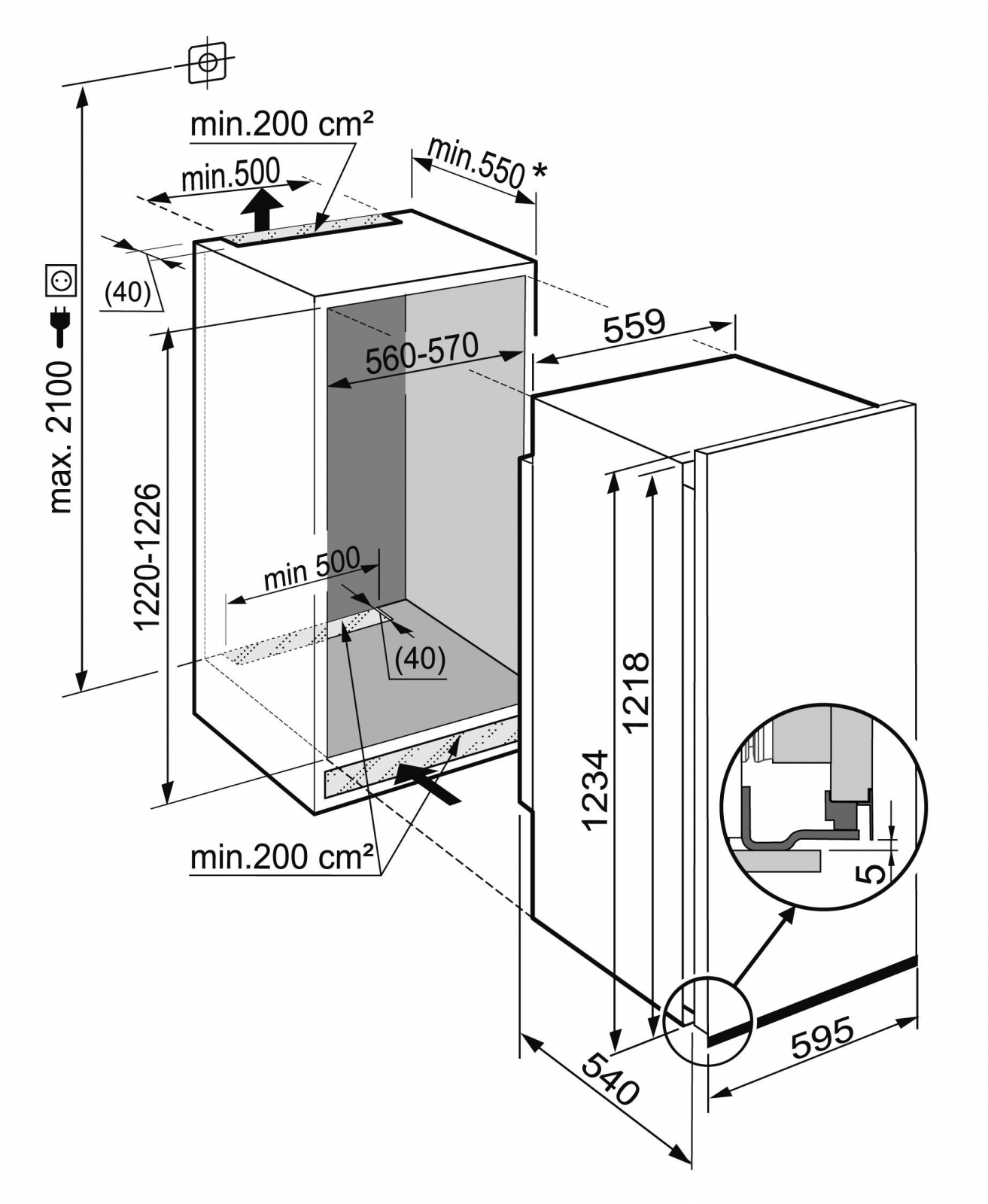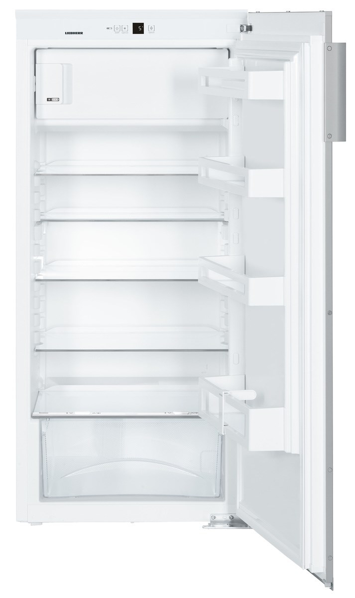 Холодильник Liebherr EK 2324 – це вбудовувана модель, що поєднує в собі стильний дизайн та сучасні технології. Його висота складає 122 см, ширина 55.9 см, а глибина 54 см, що робить його ідеальним для будь-якого інтер'єру.
