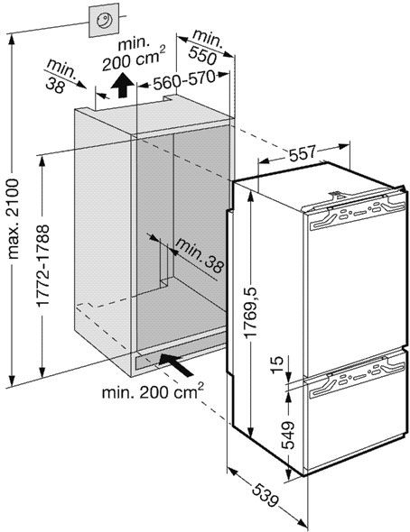 Встраївний комбінований холодильник Liebherr ICB 3166 - це ідеальний вибір для сучасної кухні. З його висотою 178.6 см та шириною 55.9 см він легко впишеться в будь-який інтер'єр. Об'єм холодильника складає 264 л, з яких 140 л займає холодильна камера, а 67 л - морозильна. Завдяки технології BioFresh, ви зможете зберігати овочі та фрукти свіжими надовго, а SuperCool швидко охолоджуватиме продукти після покупки.