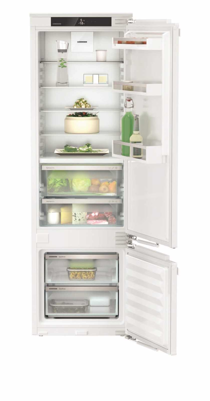 Представляємо вам вбудований двокамерний холодильник Liebherr ICBdi 5122 Plus, який поєднує стильний дизайн і високі технології. Цей холодильник має **клас енергоспоживання A++**, завдяки чому ви зможете зекономити на рахунках за електроенергію, а також оснащений **системою охолодження Динамічною** у холодильній камері і **статичною** у морозильній. Його обсяг складає **275 л**, з яких **255 л** корисного об'єму прекрасно підходять для зберігання продуктів.