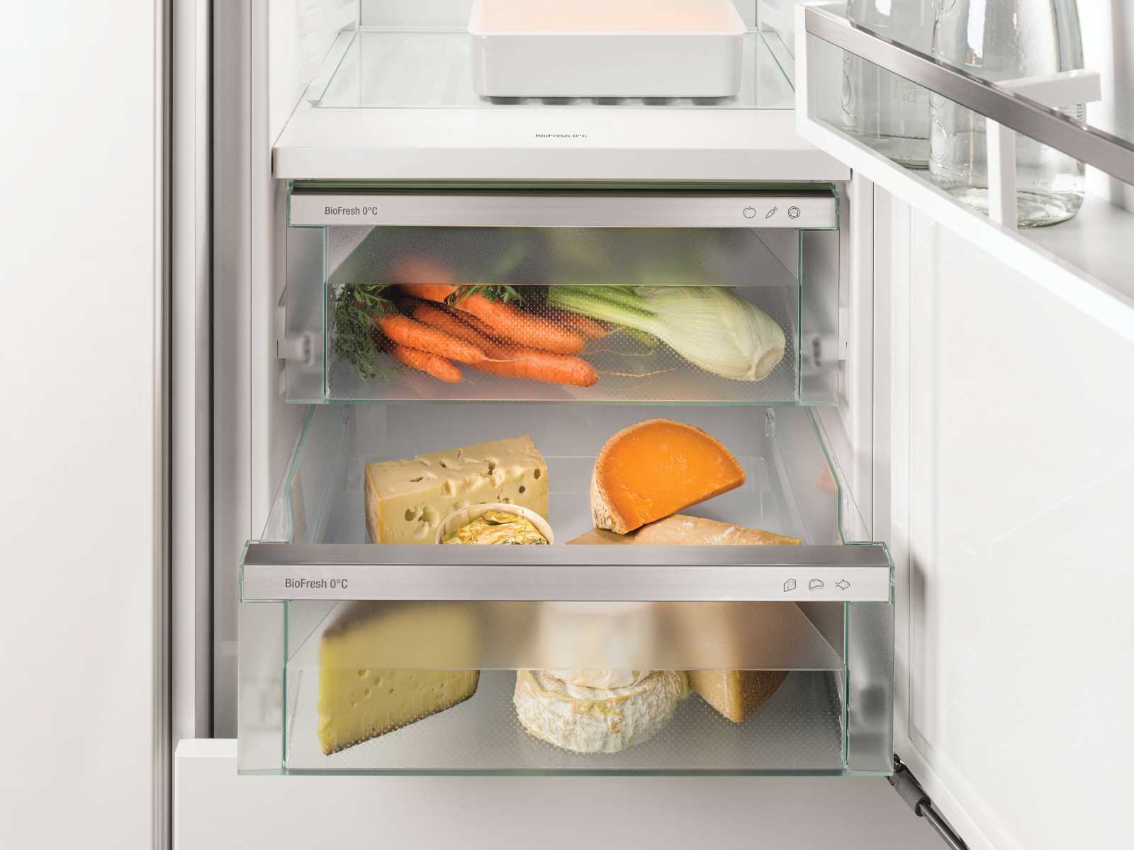 Завдяки **сигналізації відкритих дверей** і **захисту від дітей**, ваші продукти будуть у безпеці. Холодильник має **лідерське рішення з системи освітлення – світлодіодне потолочне освітлення**, що забезпечує хорошу видимість. Він також оснащений **вбудованими полицями зі скла** та **регульованими по висоті ніжками**, що легко адаптується до вашого інтер'єру. З Liebherr ICBdi 5122 Plus ви будете насолоджуватися свіжими продуктами з максимальним комфортом!
