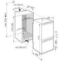 Холодильник виконаний в **білий** кольор, його розміри становлять **55,9 см** (ширина) x **177 см** (висота) x **54,6 см** (глибина), що робить його ідеальним для вбудованих кухонних меблів. Система розморожування морозильної камери - **ручна**, що дозволяє з легкістю контролювати процес обслуговування пристрою.