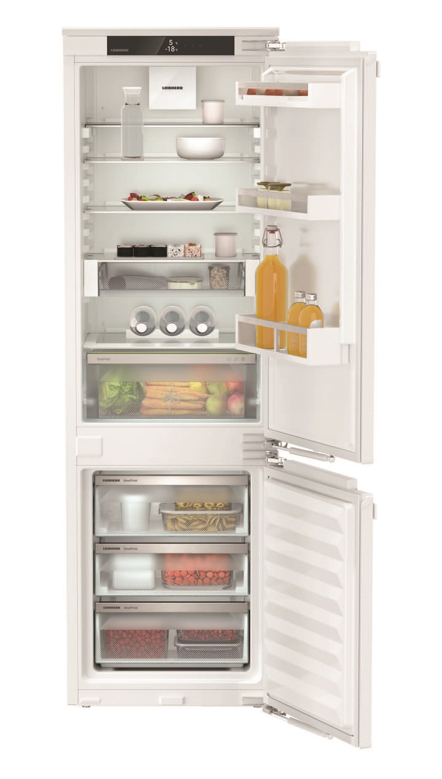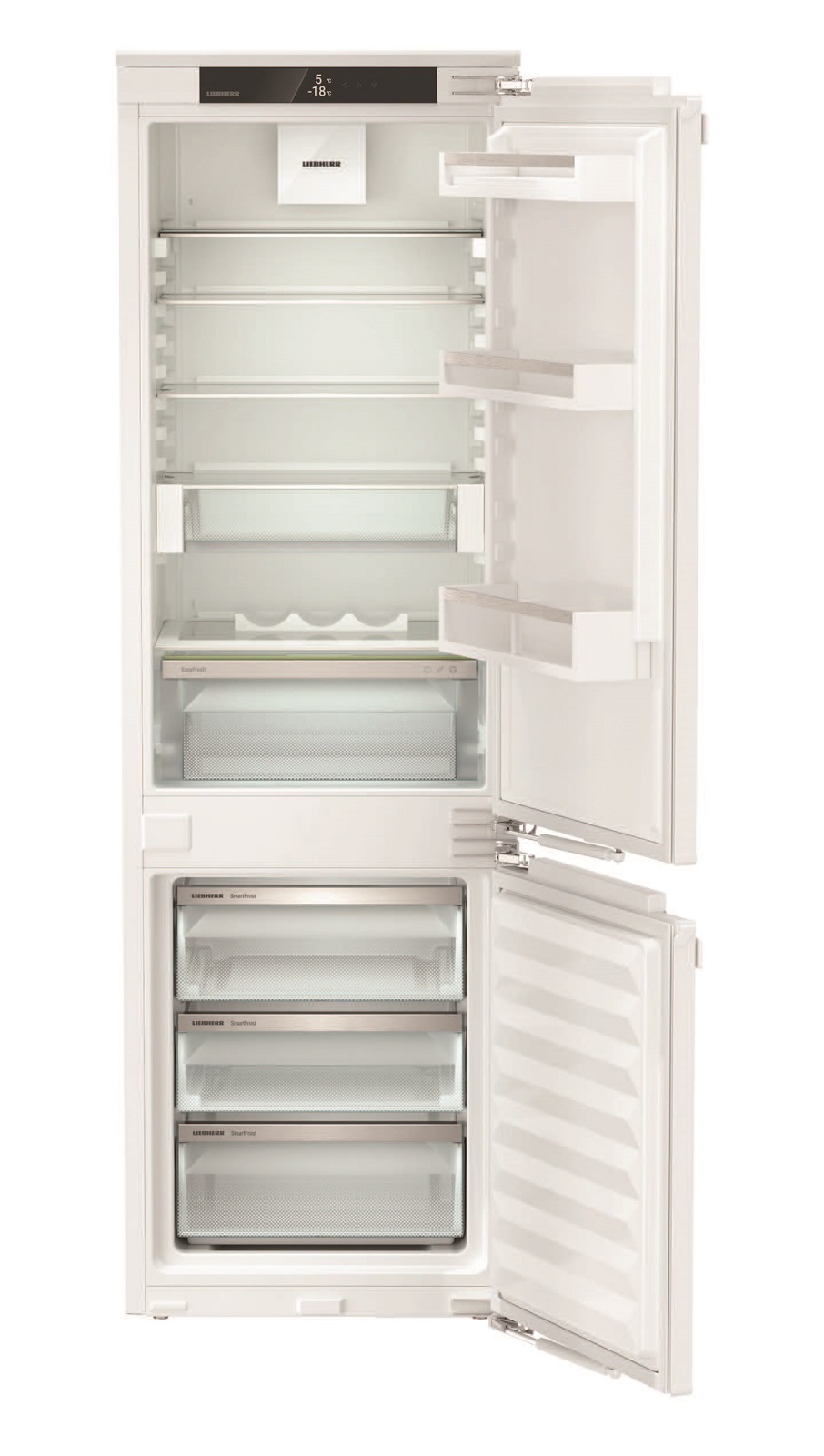 Ця модель обладнана **DuoCooling**, що забезпечує незалежне регулювання температури в холодильній та морозильній камерах. Ви можете налаштувати ідеальні умови для зберігання продуктів завдяки **SoftSystem**, яке забезпечує м’яке закриття дверей. Холодильник також включає **EasyFresh** для тривалого зберігання фруктів та овочів, а **SmartFrost** забезпечує швидке заморожування без обмерзання.