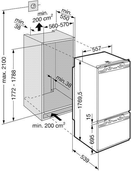 Холодильник Liebherr ICN 3066 - це вбудований комбінований двокамерний пристрій, який ідеально підійде для вашої кухні. Його висота становить 178.6 см, ширина - 55.9 см, а глибина - 54.5 см. Завдяки своїй елегантній білій поверхні, він легко впишеться в будь-який інтер'єр.