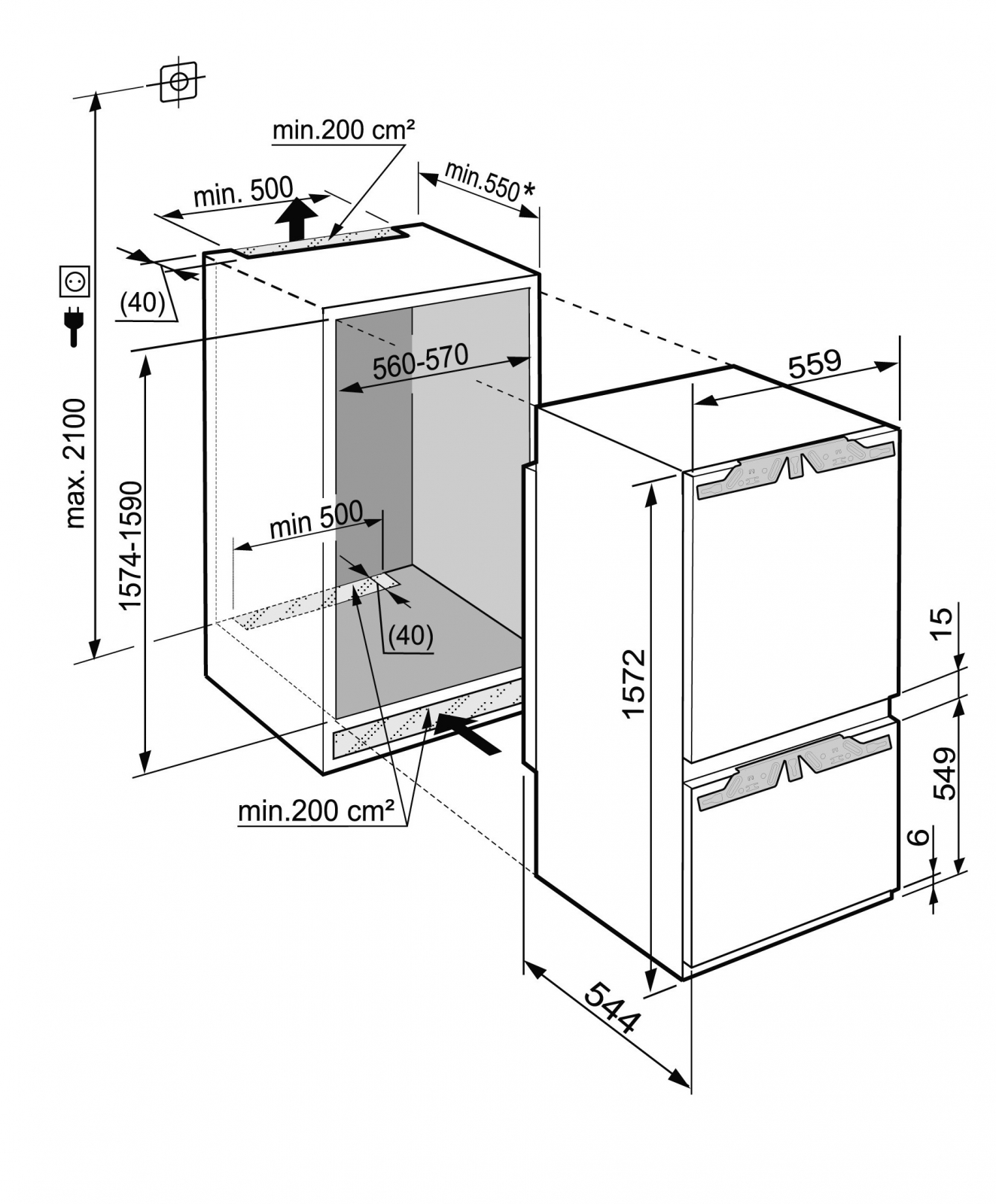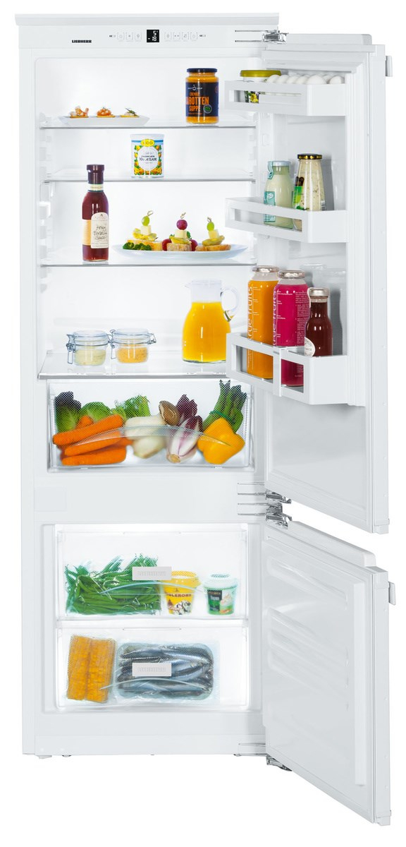 Представляємо вашій увазі встраиваемый двухкамерный холодильник Liebherr ICP 2924, який стане ідеальним рішенням для вашої кухні. Заввишки 157.4 см і шириною 55.9 см, він має об'єм холодильного відділення 184 л та морозильного - 57 л, що забезпечує достатньо місця для зберігання продуктів.