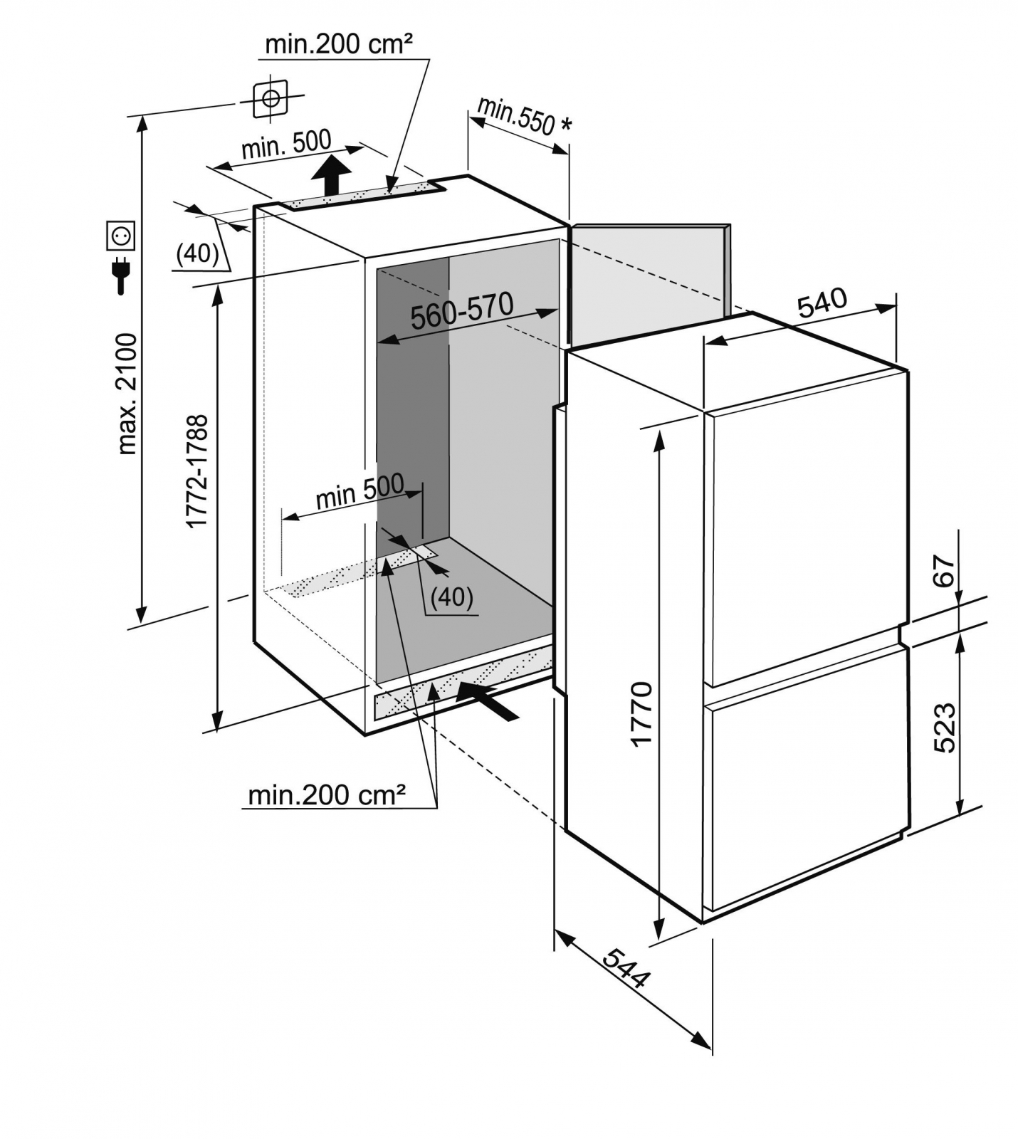 Виберіть холодильник Liebherr ICS 3234 — стильний і функціональний прилад для вашої кухні. Це вбудований двокамерний холодильник, що ідеально впишеться в будь-який інтер'єр. Його висота становить 177,2 см, а ширина та глибина - 54 см, що робить його компактним, але вмістким.