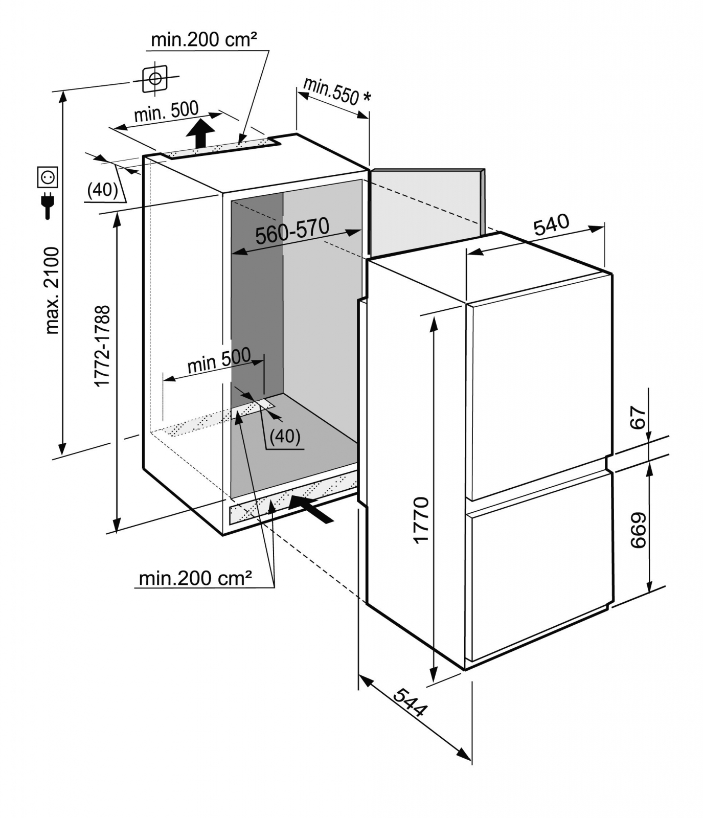 Холодильник Liebherr ICS 3334 – це вбудований двокамерний пристрій, що поєднує у собі сучасні технології та стильний дизайн. Його висота становить 177.2 см, ширина – 54 см, а глибина – 54.4 см, що робить його ідеальним вибором для вбудованих кухонь.