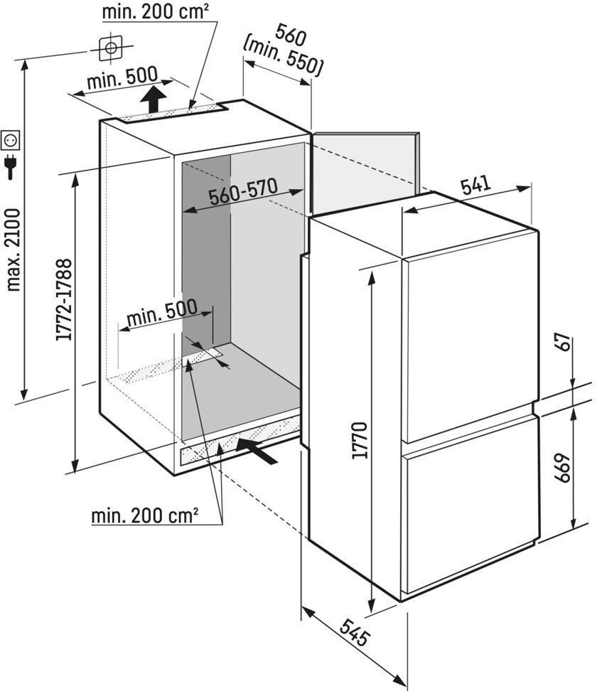 Холодильник Liebherr ICSe 5103 – це ідеальний вибір для тих, хто цінує сучасні технології та енергоефективність. Цей вбудований холодильник з морозильною камерою класу А++ поєднує в собі стильний дизайн та функціональність. Об'єм холодильної камери становить 190 л, що забезпечує достатньо простору для зберігання продуктів, а морозильна камера має об'єм 72 л. Розморожування морозильної камери здійснюється ручним способом.