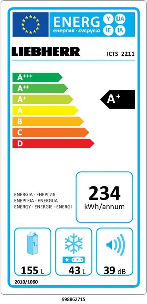 З рівнем шуму 39 дБ, Liebherr ICTS 2211 працює без ускладнень. Модернізація дверного монтажу та регульовані ніжки також додають практичності у використанні. Насолоджуйтесь ідеальними умовами для зберігання продуктів з Liebherr!