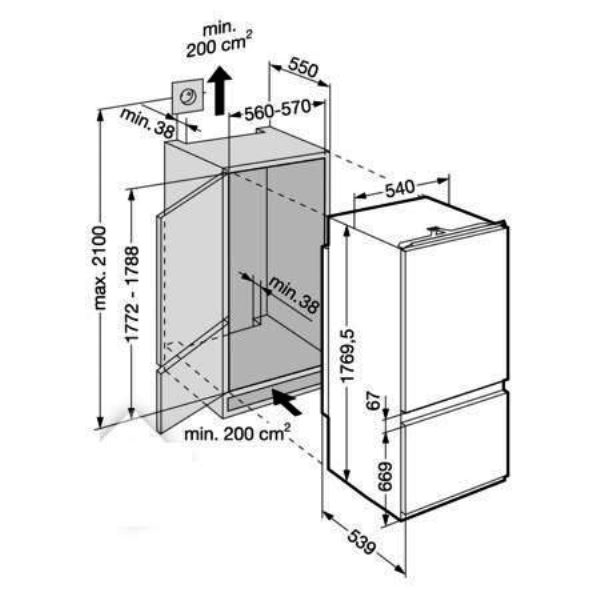 Холодильник Liebherr ICUNS 3023 — це вбудований двокамерний комбінований холодильник, який стане ідеальним доповненням вашої кухні. З його висотою 178.6 см, шириною 54.3 см та глибиною 54.6 см, він забезпечує оптимальне використання простору, при цьому вага нетто становить 69.5 кг.