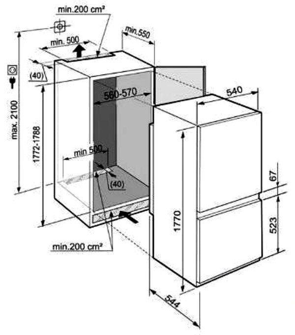 Холодильник Liebherr ICUS 3214 - це втілення сучасних технологій та елегантного дизайну. Висотою 178 см, шириною 54 см і глибиною 54.4 см, він легко інтегрується в будь-який інтер'єр завдяки вбудованій конструкції та класичному білому кольору.