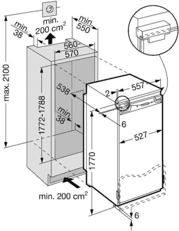 Його компактні розміри: висота 178.6 см, ширина 55.9 см, глибина 54.4 см та низький рівень шуму 38 дБ роблять цей холодильник ідеальним вибором для будь-якої кухні. З енергопотребленням в 166 кВт/ч на рік, ви також зможете заощадити на електриці. Liebherr IKB 3660 - ваш надійний помічник для організації простору на кухні!