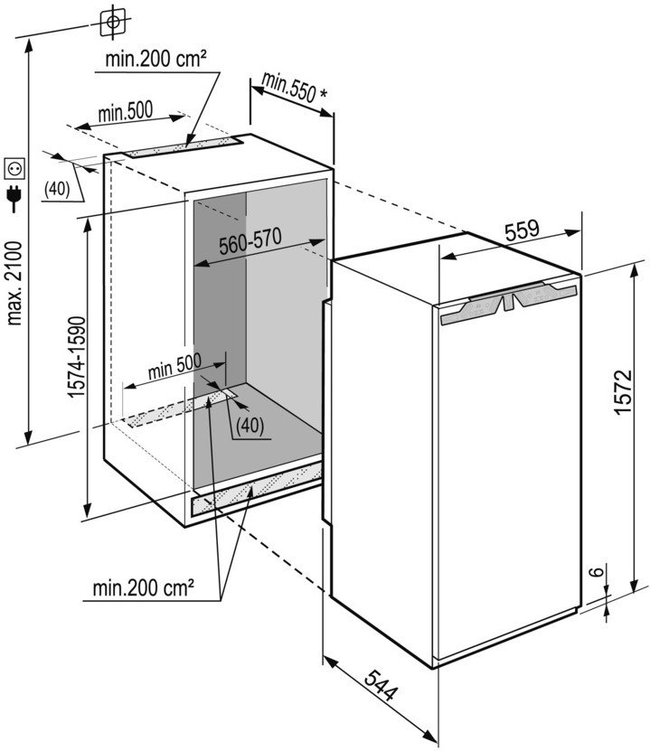 Представляємо встраиваемий однокамерний холодильник Liebherr IKBP 2954, який ідеально підійде для вашої кухні. Його компактні розміри - 159 см у висоту, 54.3 см у ширину та 54.4 см у глибину - дозволяють зручно вмонтувати його в меблі без зайвих труднощів.