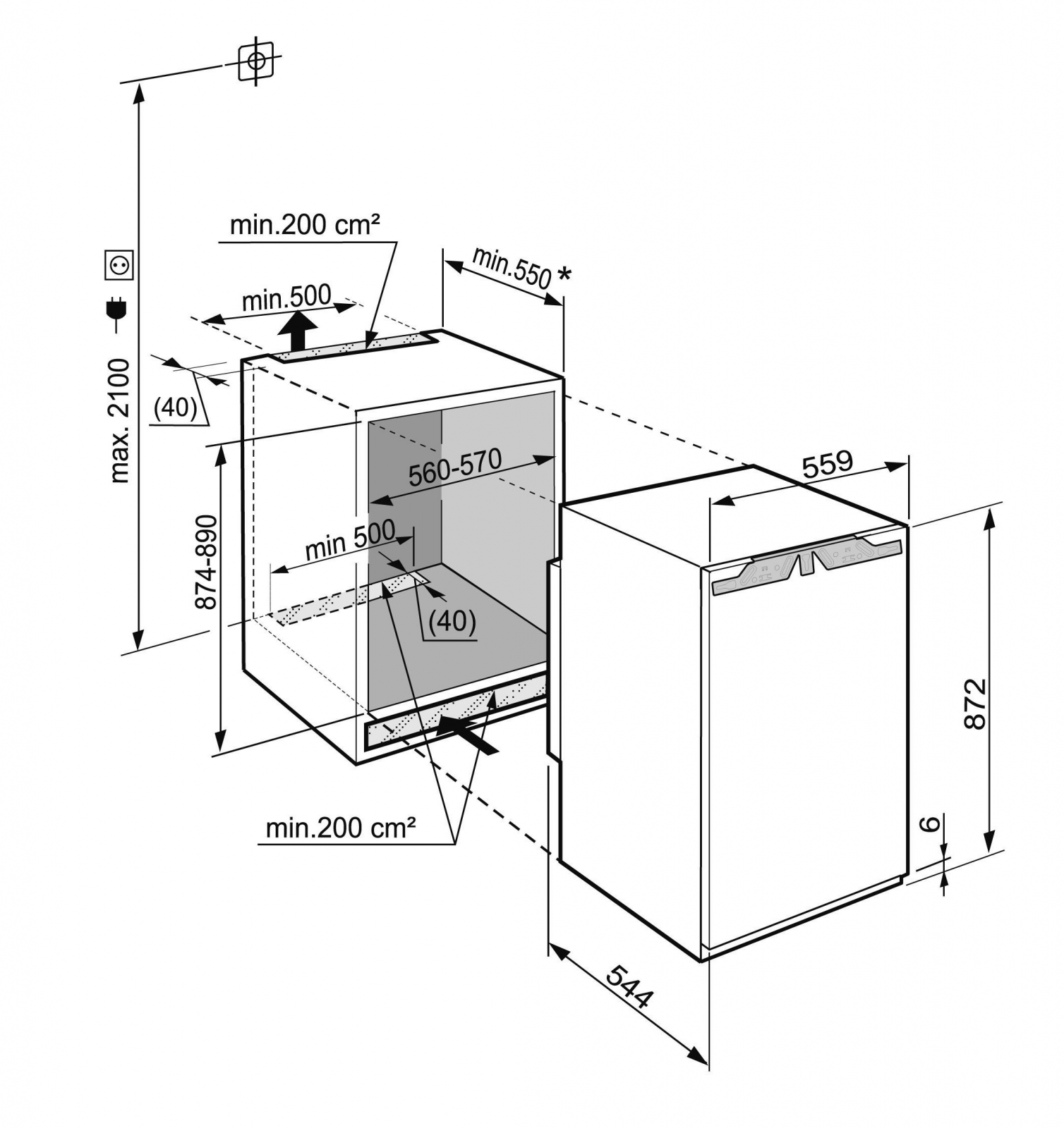 Ознайомтеся з вбудованим однокамерним холодильником Liebherr IKP 1624, який стане ідеальним доповненням до вашої кухні. Його висота складає **87,4 см**, ширина – **55,9 см**, а глибина – **54,4 см**, що робить його компактним і зручним для вбудовування в кухонні гарнітури.