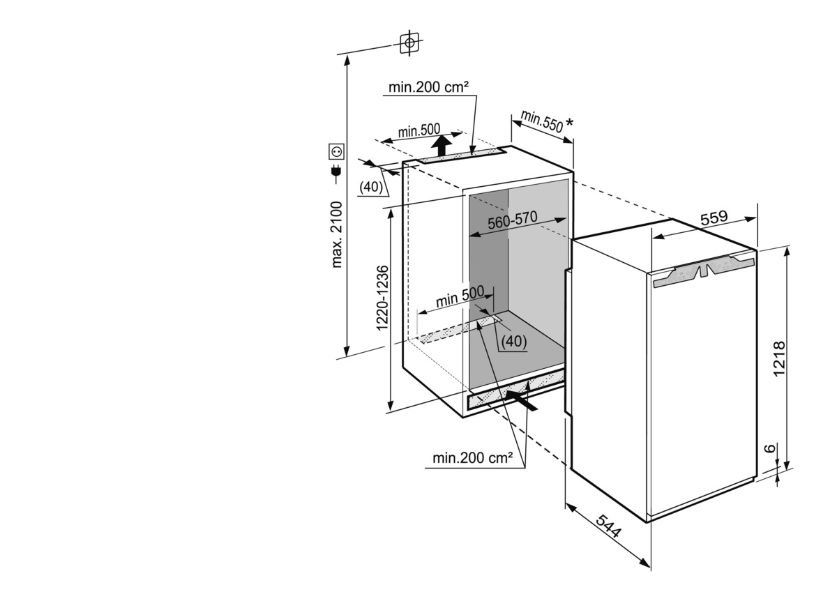 Liebherr IKP 2324 — встраиваемий однокамерний холодильник, який ідеально підходить для сучасних кухонь. Його висота складає 122 см, а ширина – 55.9 см, що робить його зручним для встановлення в меблях.