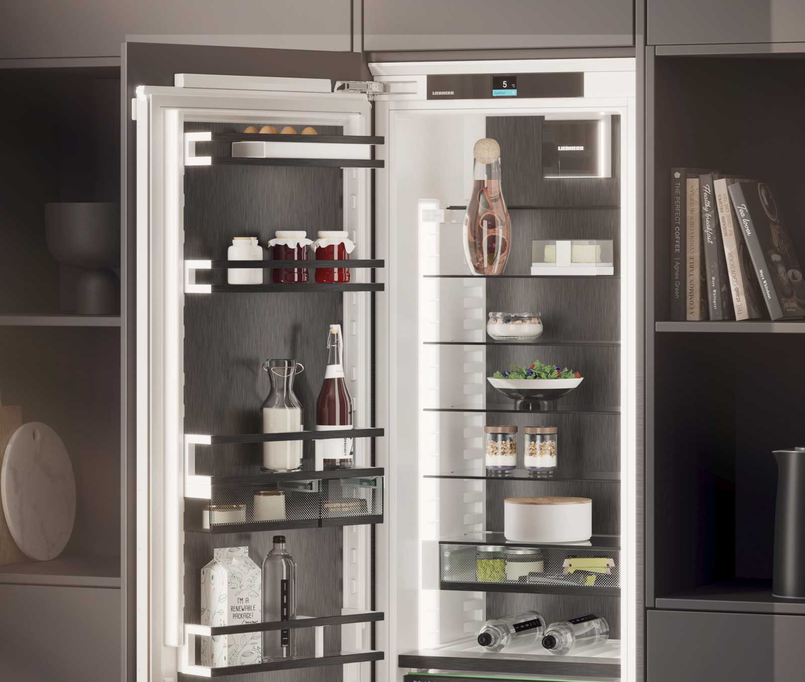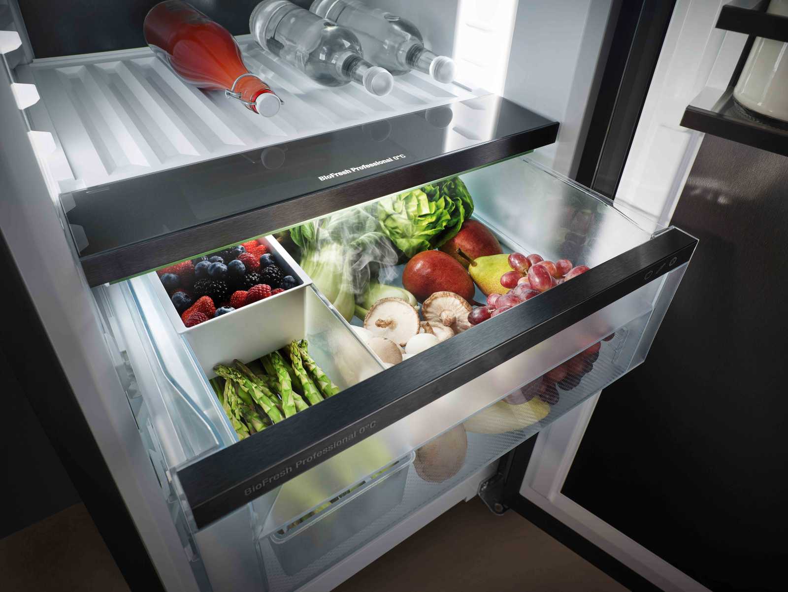 Liebherr IRBcx 5170 BS0 Peak виготовлений з високоякісних матеріалів - двері з сталі і стеклянні полиці зі сталевим обрамленням забезпечують надійність та стильний вигляд. Унікальна технологія SmartSteel мінімізує появу слідів і плям, роблячи догляд за холодильником легшим.