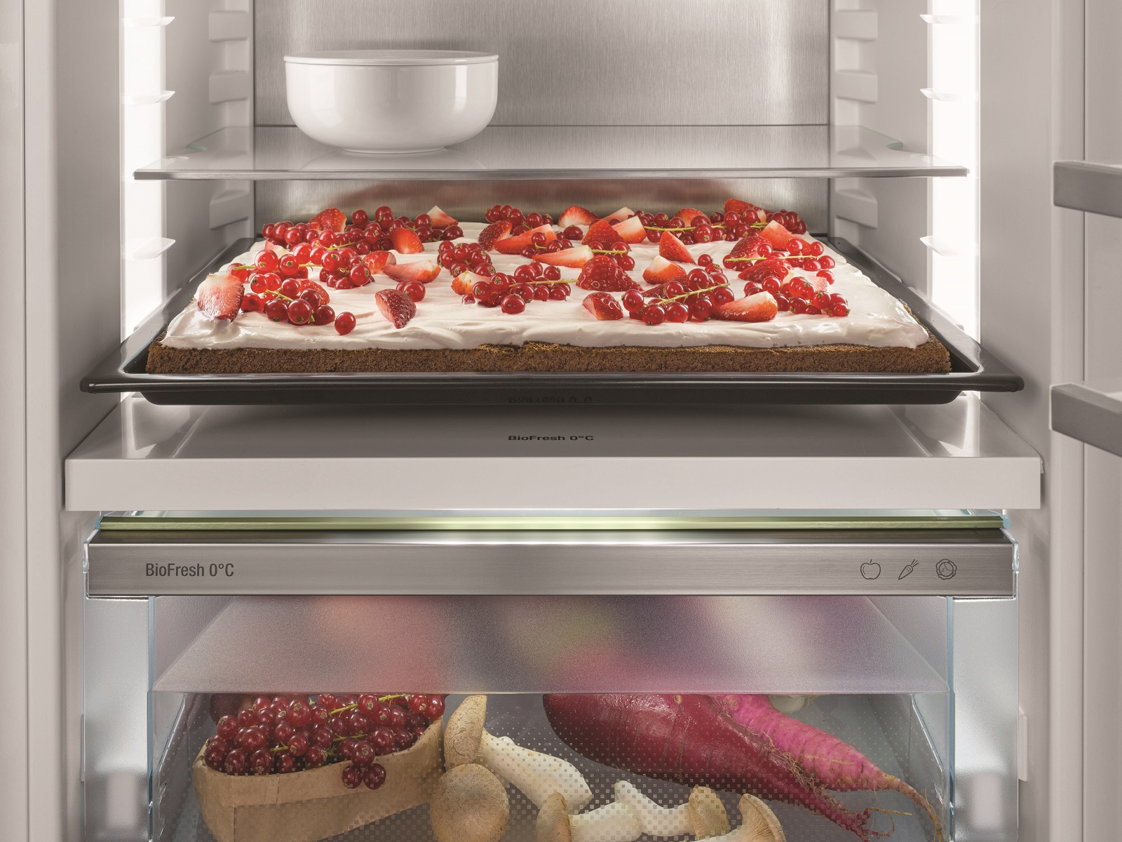 Обсяг холодильника складає **246 л**, з яких **156 л** відведено для основної камери, а **65 л** — для спеціальної технології **BioFresh**. За допомогою цієї технології продукти зберігають своє свіжість і натуральний смак до трьох разів довше. Додаткова функція **SuperCool** дозволяє швидко охолоджувати нові продукти, а **VarioSafe** забезпечує зручне зберігання різноманітних товарів.