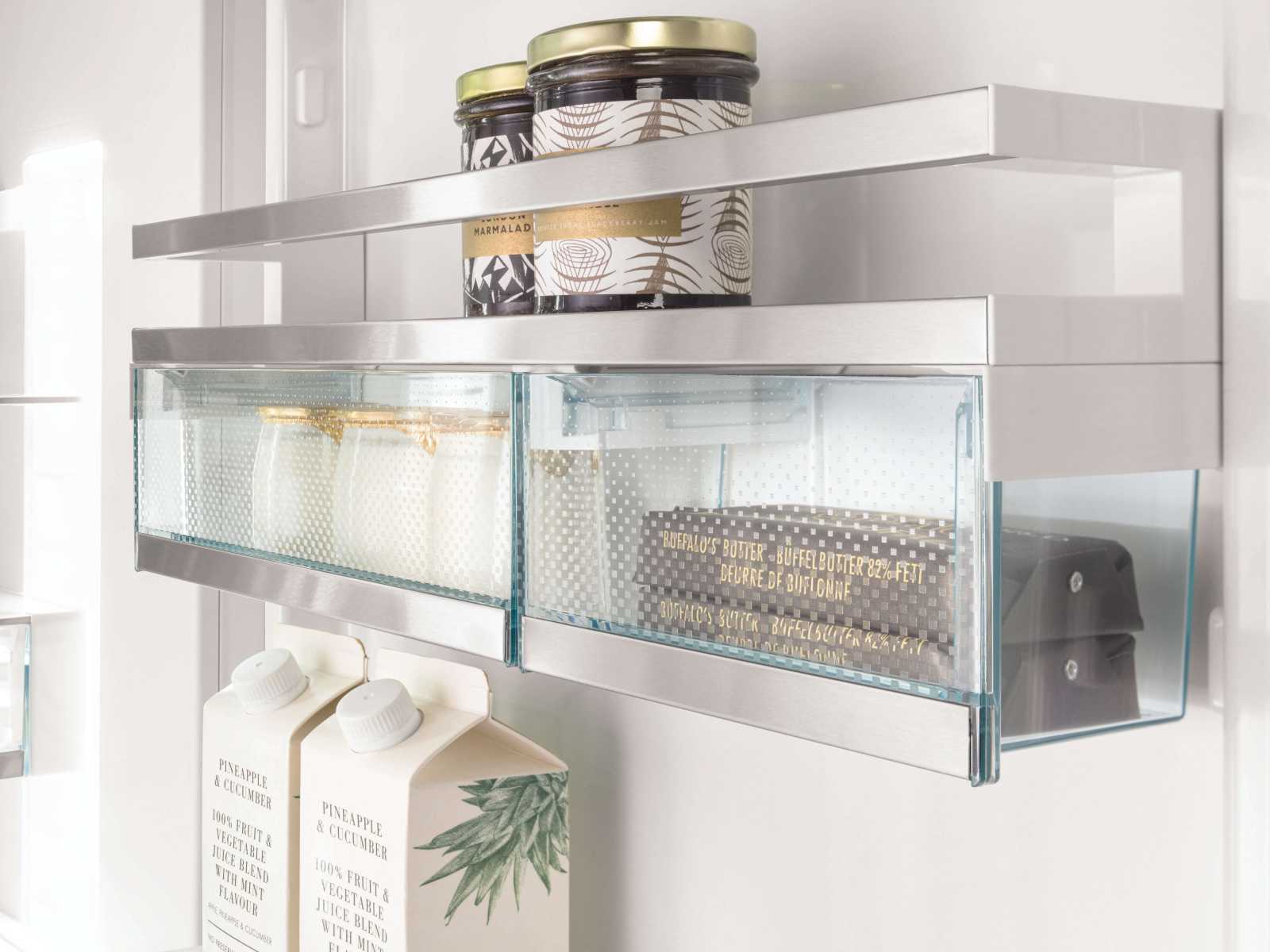 Холодильник обладнаний технологіями BioFresh, що дозволяє зберігати продукти свіжими довше, та SuperCool, яка швидко охолоджує нові продукти. Крім того, система SmartDevice забезпечує можливість керування холодильником з мобільного телефону. У холодильній камері обсягом 195 л ви знайдете 8 основних полок, зроблених зі скла, а також 3 контейнери BioFresh.