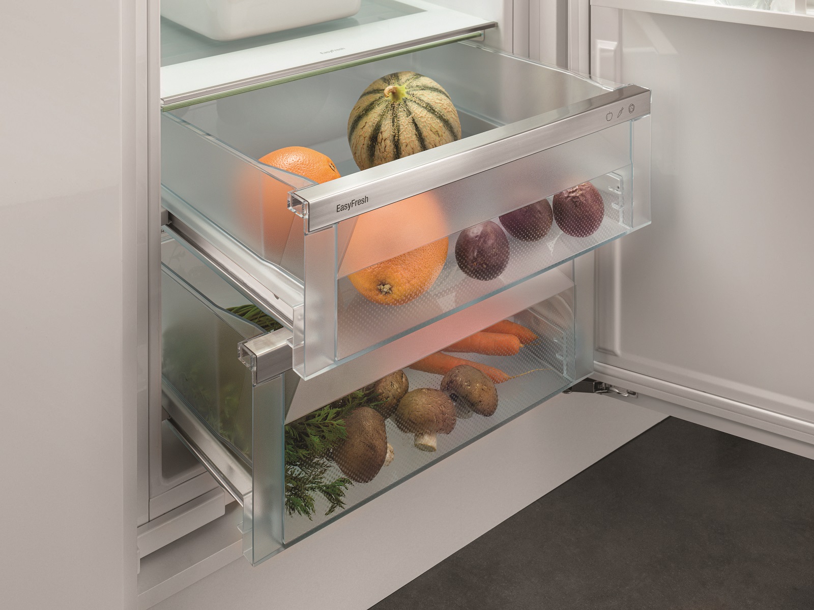 Цей холодильник обладнаний кейсами для зберігання продуктів та технологією EasyFresh, що допомагає зберегти свіжість овочів і фруктів. Також передбачено функцію SuperCool для швидкого охолодження продуктів. З рівнем шуму всього 39 дБ, ви зможете насолоджуватися тишею в домі.