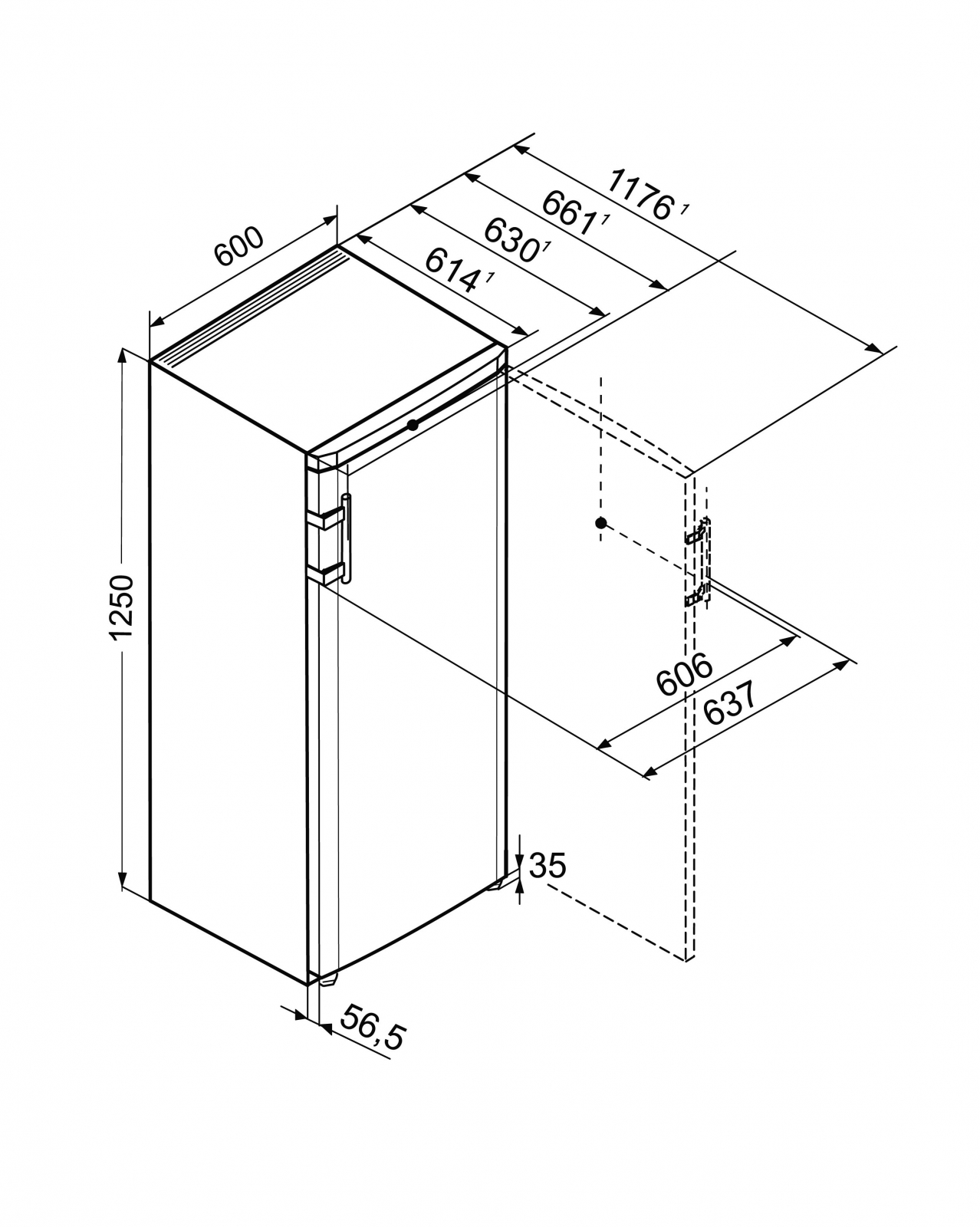 Цей пристрій також вирізняється можливістю перенавішування дверей, що дозволяє адаптувати його до вашого простору. Холодильник має **дві регульовані ніжки** для стабільності та **лоток для яєць** для зручності. Загальна висота холодильника складає **125 см**, ширина - **60 см**, а глибина - **63 см**.