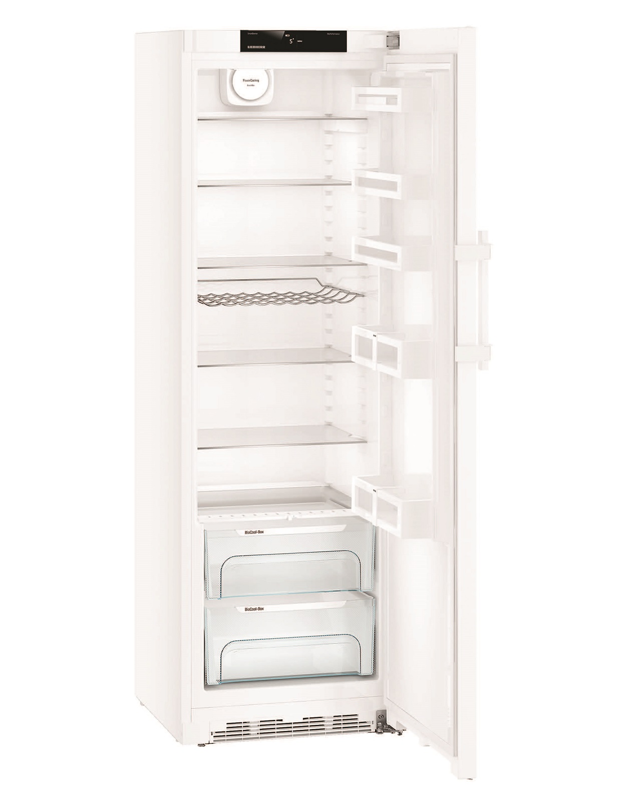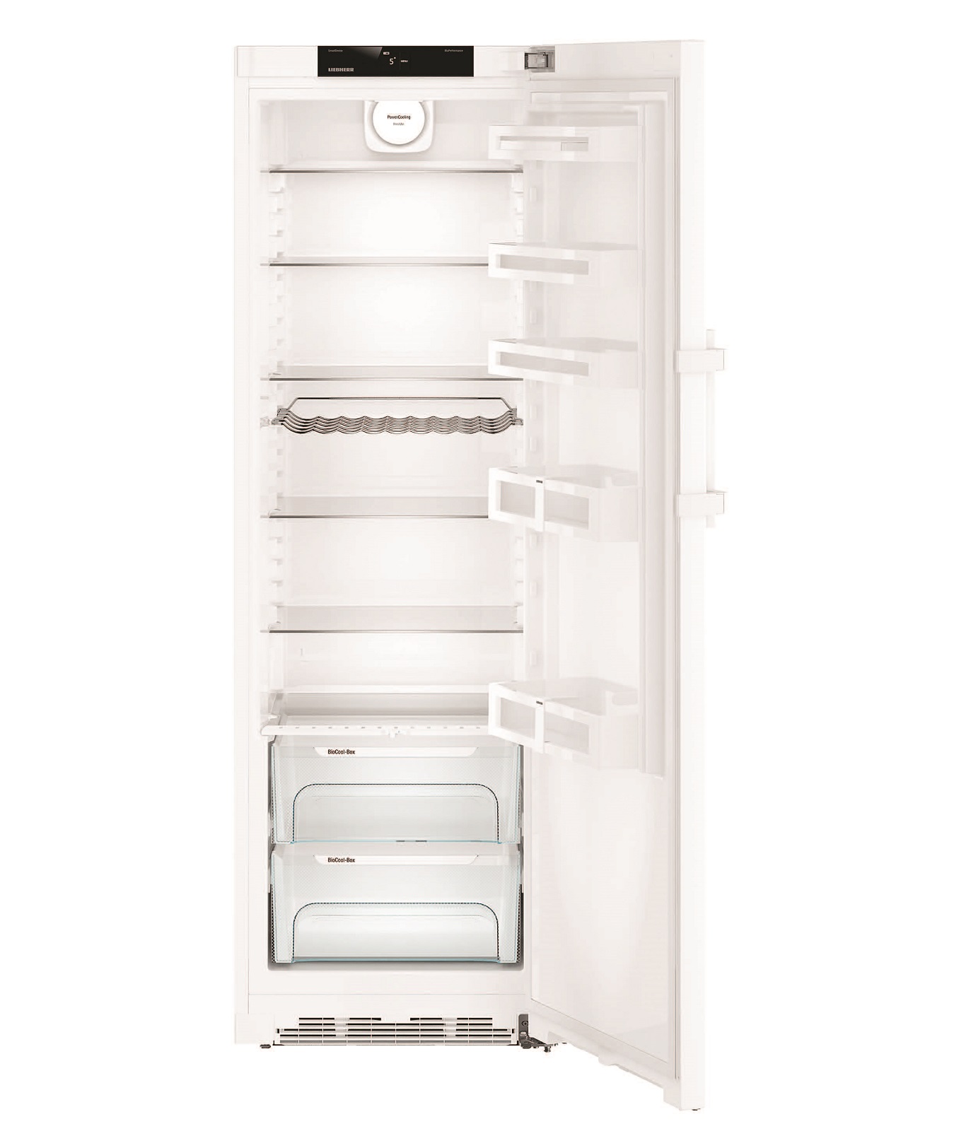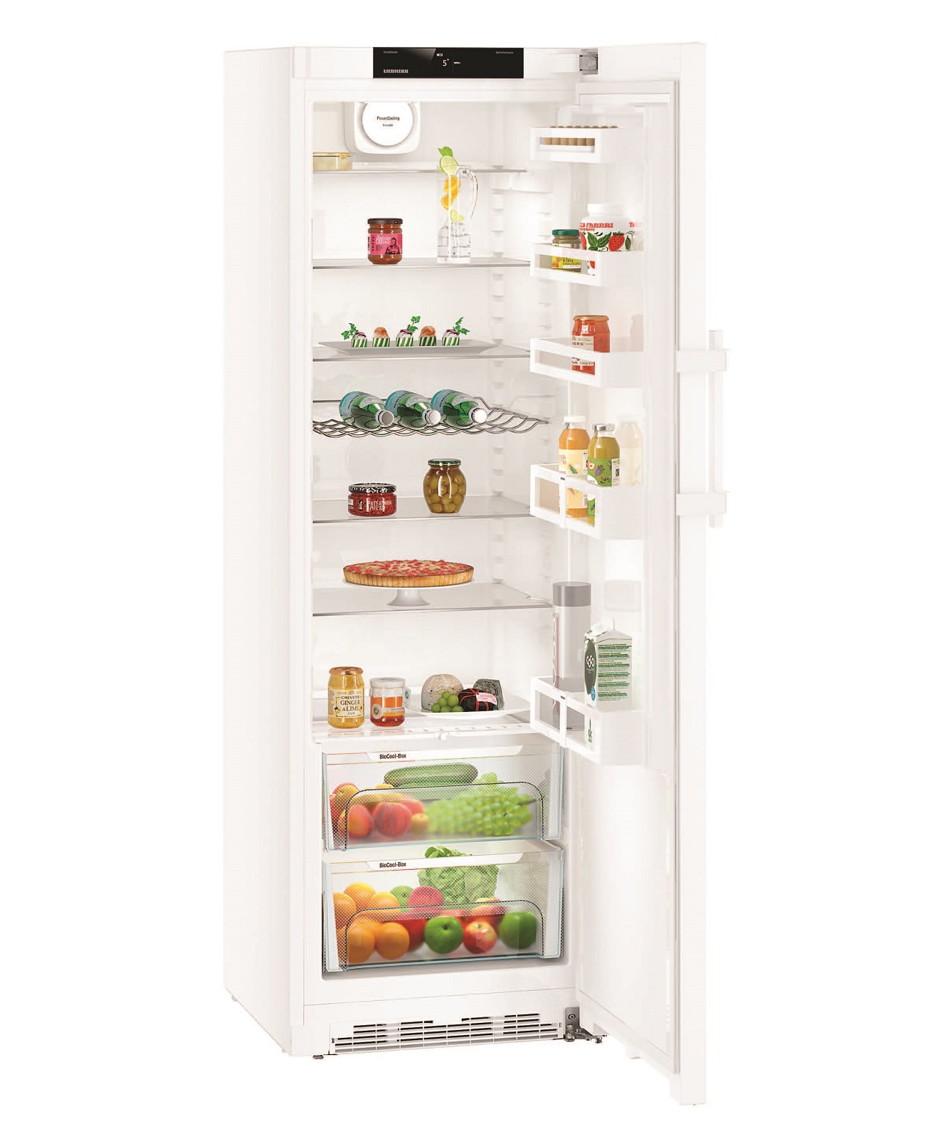 Холодильник також обладнаний **внутрішнім LED-освітленням**, яке забезпечує хорошу видимість в холодильній камері, та має **дві контейнера BioCool** для особливого зберігання продуктів. Це ваш надійний партнер для зберігання продуктів на тривалий термін!