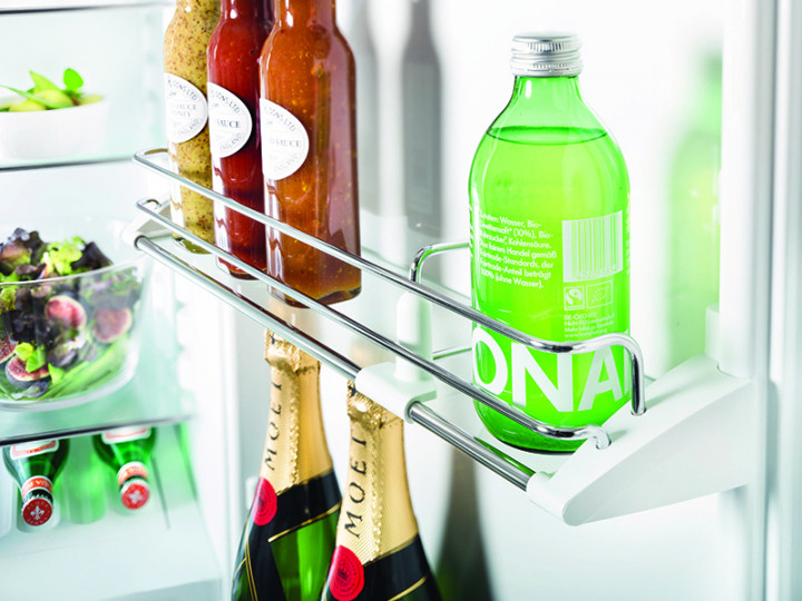 Внутрішня частина холодильника виконана зі стекла зі стальним обрамленням, що надає йому елегантного вигляду, а динамічна система охолодження гарантує рівномірну морозильну температуру. Не обійшлося без зручних добавок, таких як внутрішнє світлодіодне освітлення та можливість перенавішування дверей.