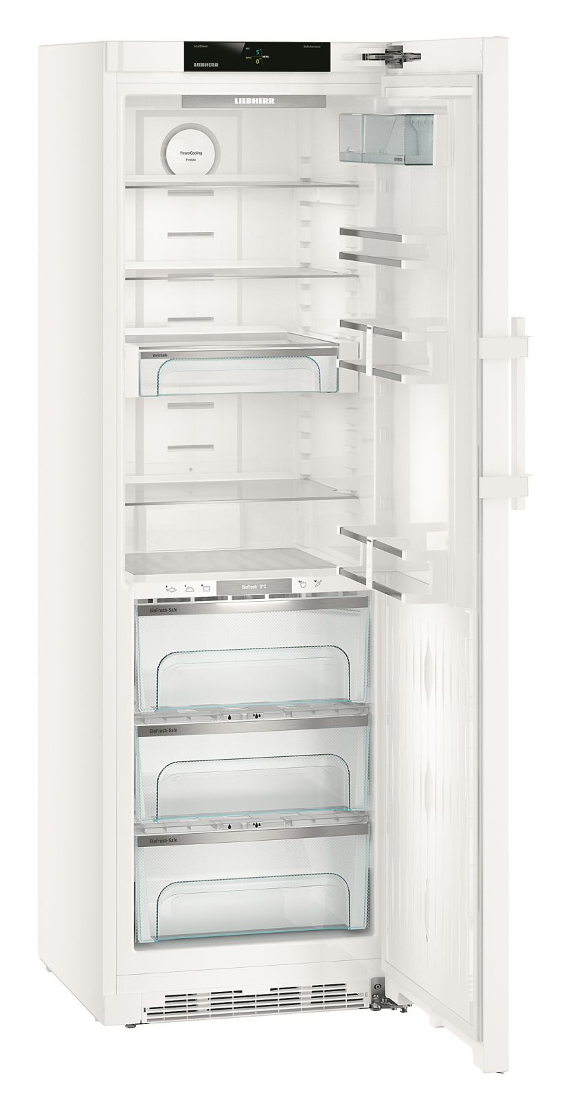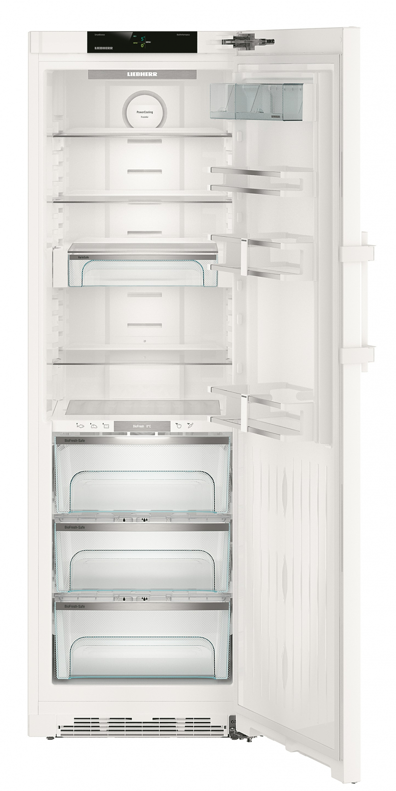 Висота холодильника становить **185 см**, ширина – **60 см**, а глибина – **66.5 см**, що робить його ідеальним для кухні будь-якого розміру. Є також **защита від дітей**, що забезпечує безпеку у домі. У холодильнику передбачено **3 контейнера BioFresh** для зберігання делікатних продуктів та **5 дверних полок** для зручності організації.