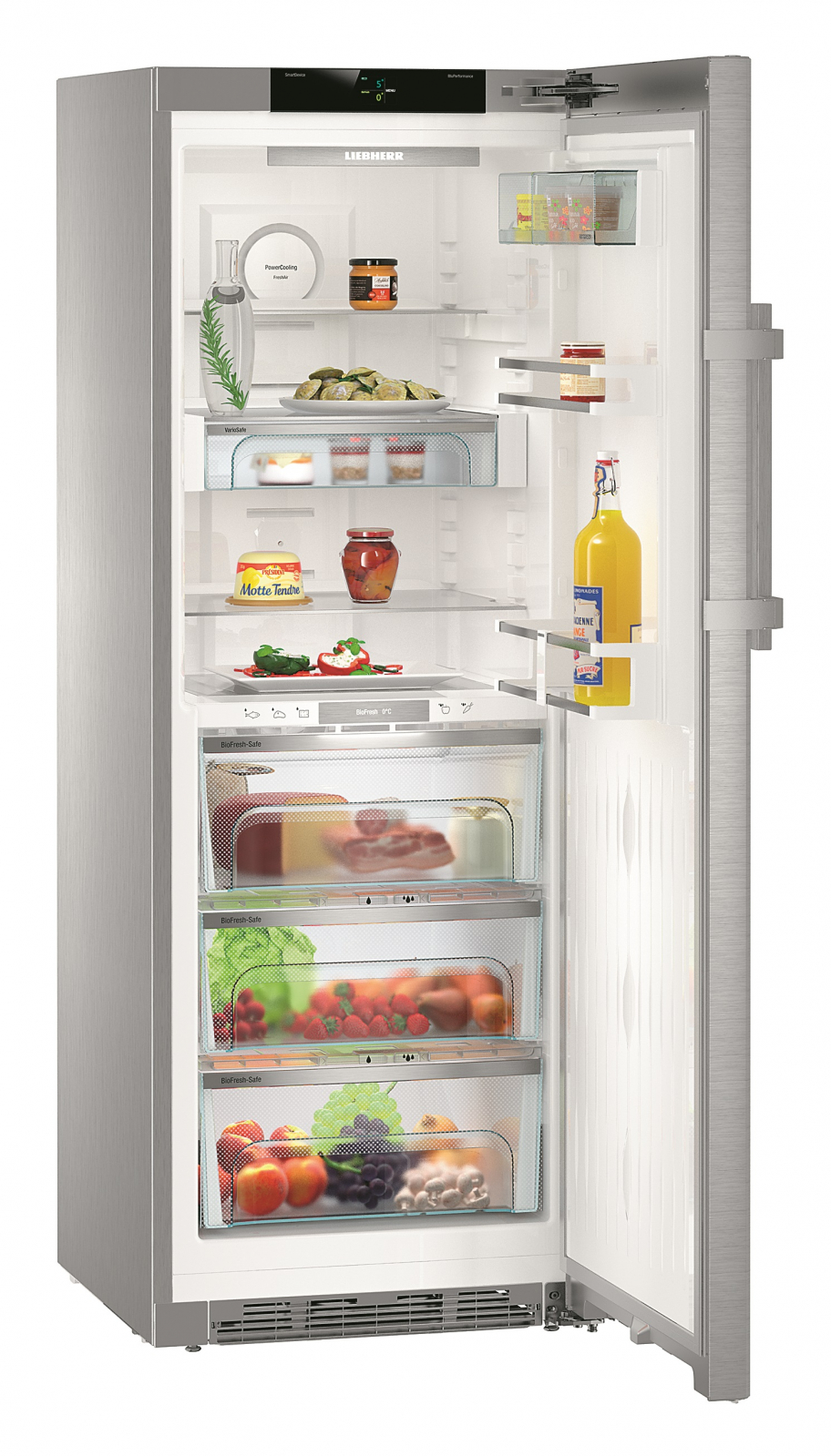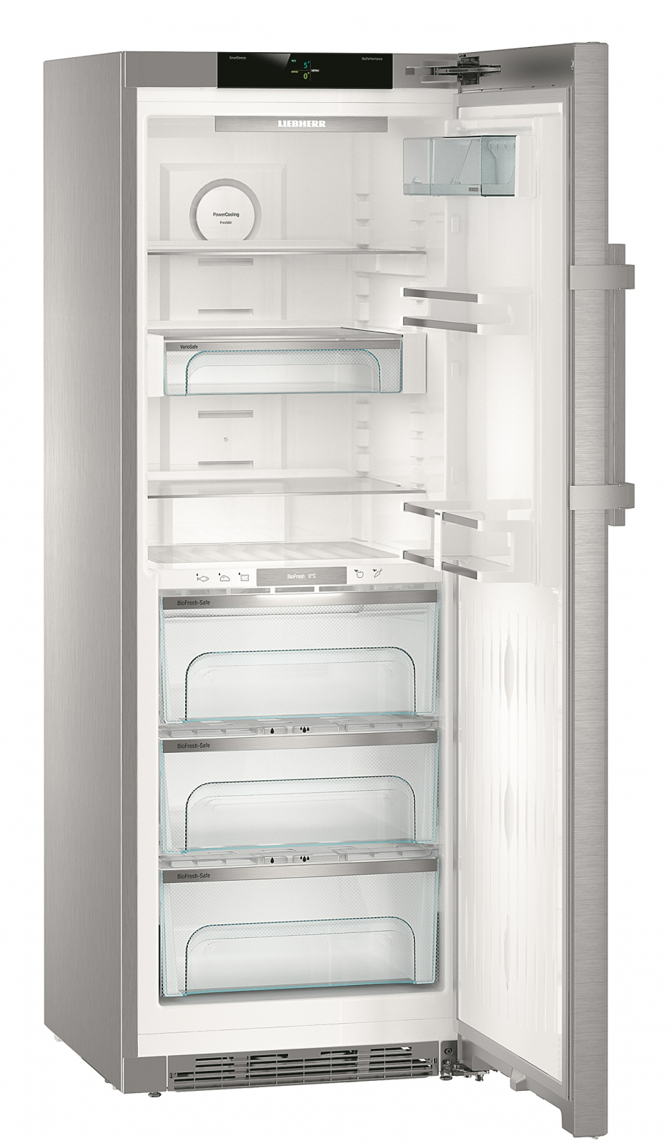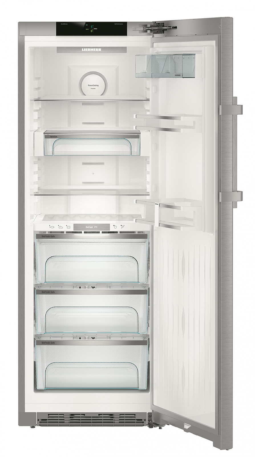 Функція SuperCool дозволяє швидко охолоджувати нові продукти, а система VarioSafe надає гнучкість у зберіганні різних продуктів завдяки регульованим полкам. Завдяки SmartSteel дверям, утримання чистоти стає простішим, а SoftSystem забезпечує легке і м'яке закриття дверей.