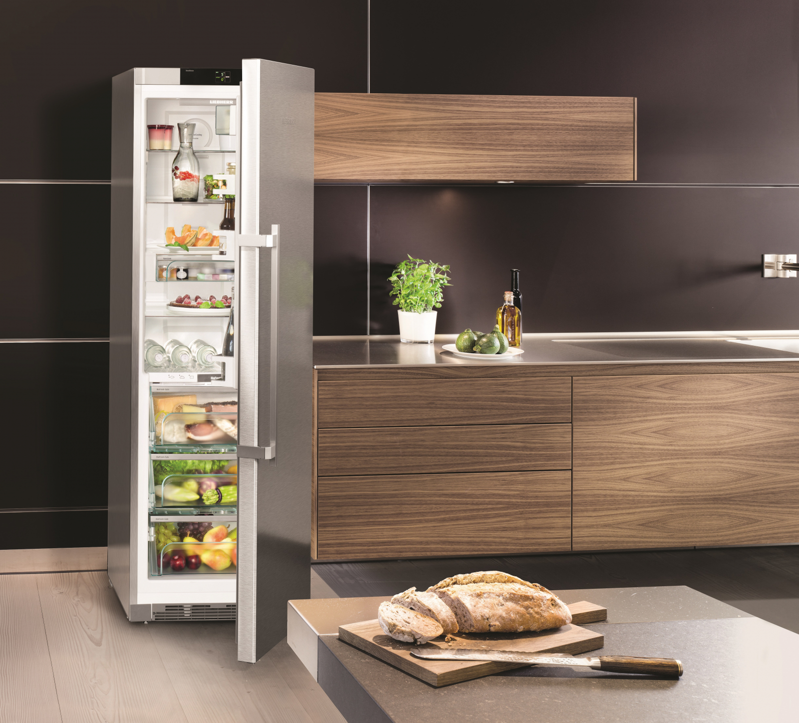 Завдяки інноваційній технології **BioFresh**, ваші овочі та фрукти залишаться свіжими довше. А функція **SuperCool** дозволяє швидко охолоджувати нові продукти, що додаються до холодильника. Холодильник обладнаний **сенсорним дисплеєм**, що забезпечує легкий доступ до всіх налаштувань.