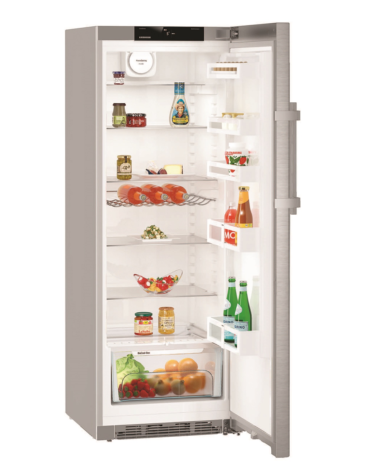 Система **BioCool** забезпечує оптимальні умови для зберігання овочів та фруктів, подовжуючи їх свіжість. Функція **SuperCool** дозволяє швидко охолоджувати нові продукти, а **внутрішнє LED-освітлення** забезпечує яскраве і рівномірне освітлення холодильника, що підвищує комфорт при користуванні.