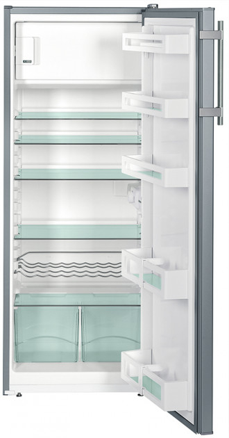 Крім того, холодильник Liebherr Ksl 2814 має п'ять дверних полок та дві контейнера для овочів і фруктів, що дозволяє оптимально організувати простір. У конструкції також передбачено автоматичне розморожування холодильного відділення, що полегшує утримання в чистоті.