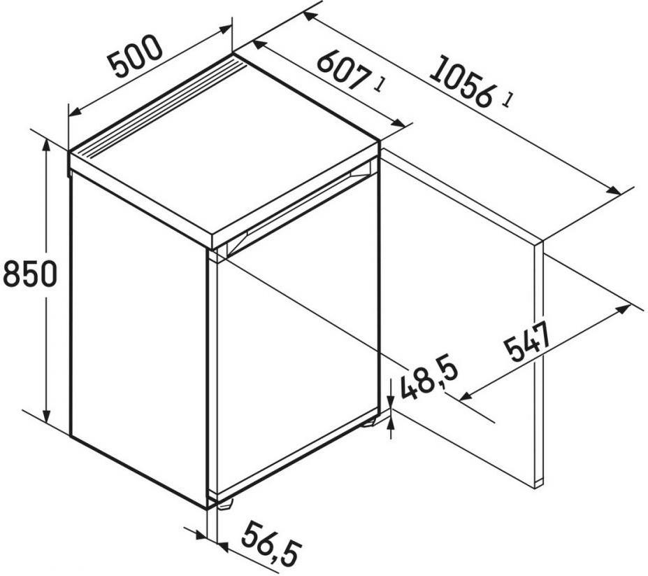 Розміри холодильника складають **50 x 85 x 60,7 см**, а його стильний білий колір доповнить інтер'єр будь-якої кухні. Холодильник також оснащений технологією **multiAirflow**, яка забезпечує рівномірний розподіл холодного повітря, зберігаючи свіжість продуктів на довший термін. Використання **VitaFresh** гарантує оптимальні умови для зберігання овочів та фруктів.