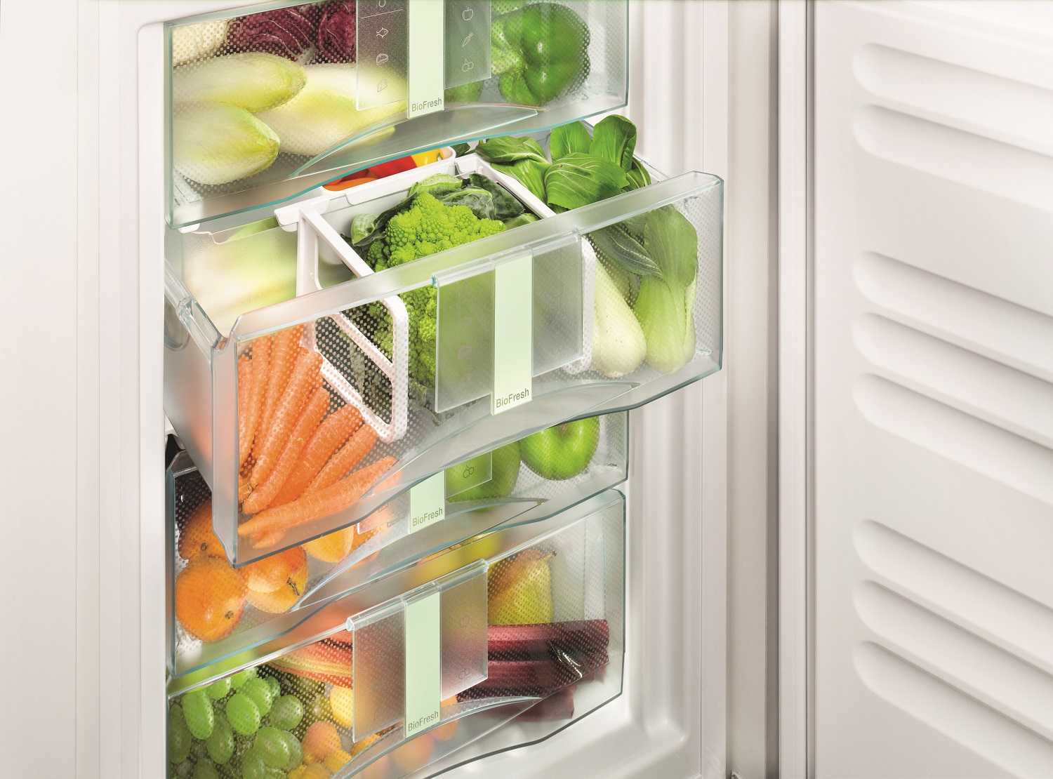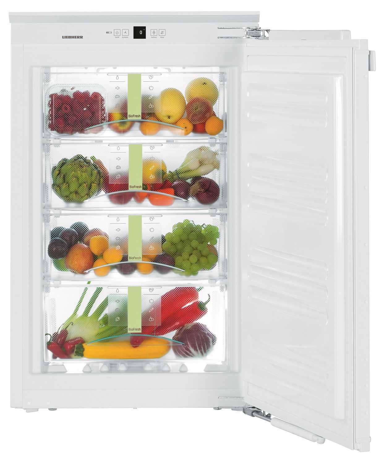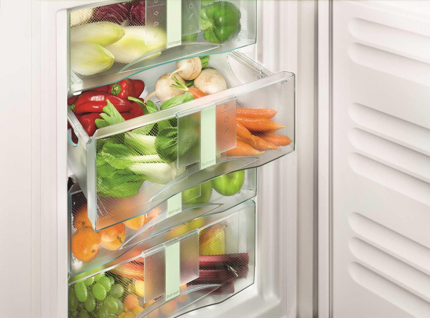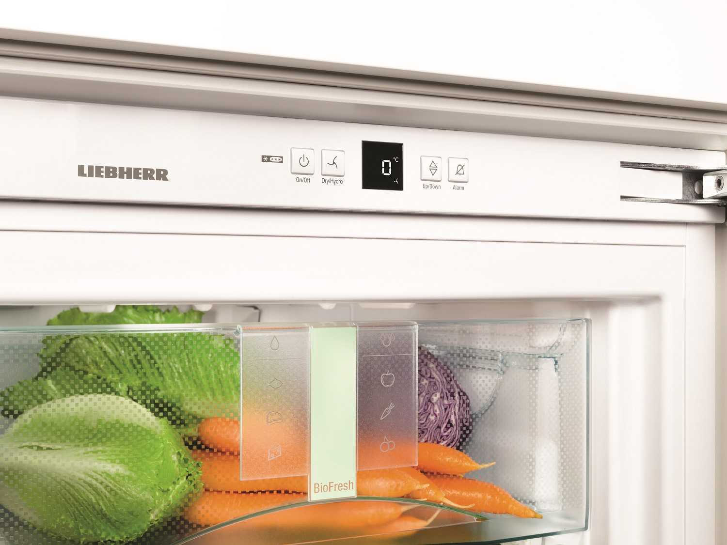 Основна перевага моделі — система **BioFresh**, яка зберігає свіжість продуктів протягом тривалого часу завдяки спеціальному режиму зберігання. Ви зможете насолоджуватись свіжими овочами та фруктами, адже корисний об'єм складає **84 л**. Холодильник також обладнано **електронним управлінням** та надійною **сигналізацією відкритих дверей**, що забезпечить зручність у використанні.