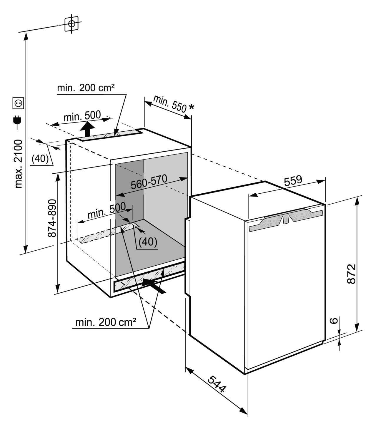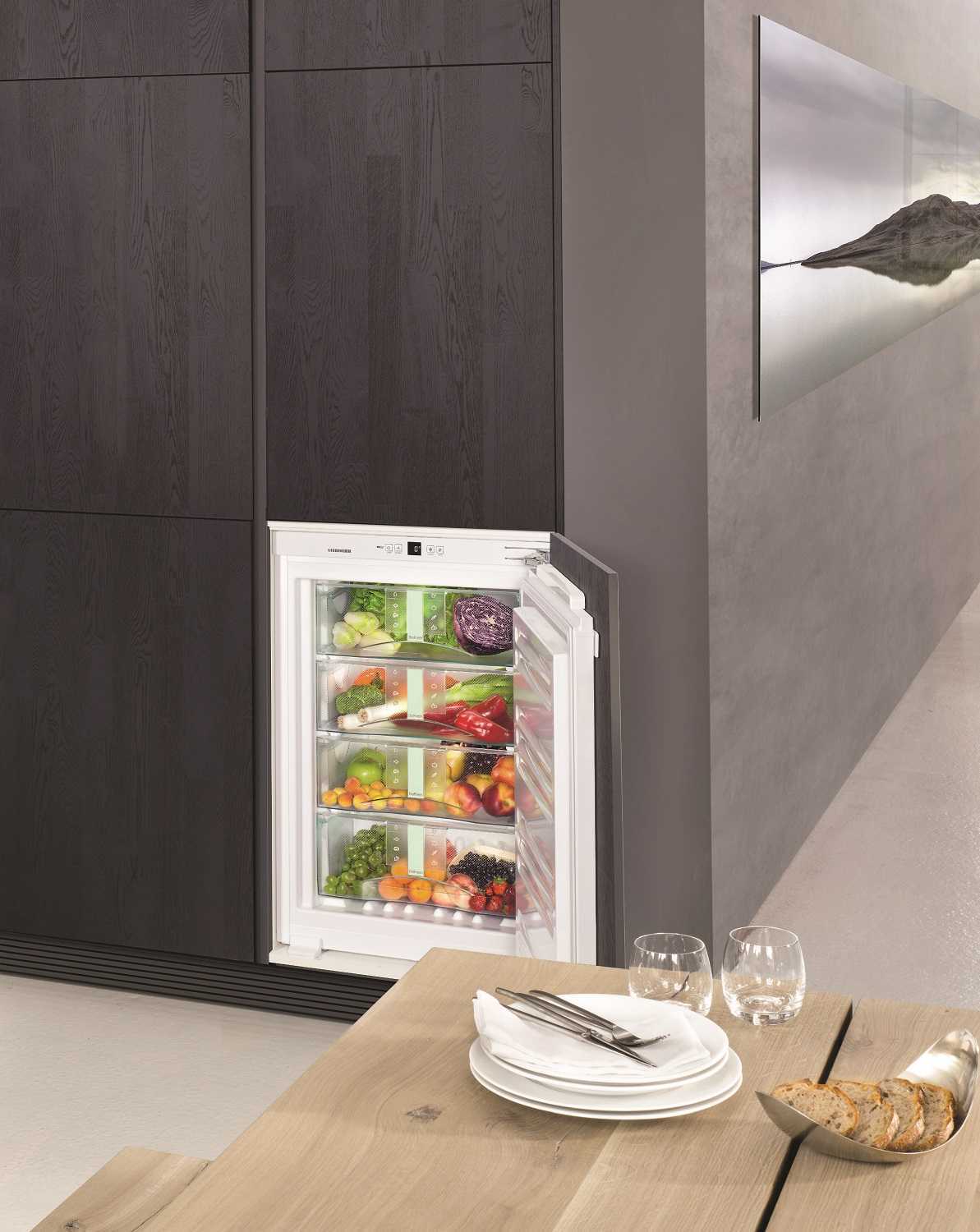 Холодильник Liebherr SIBP 1650 — ідеальний вибір для вашої кухні, об'єднуючи в собі сучасні технології та компактний дизайн. Цей вбудований однокамерний холодильник має **висоту 87.2 см**, **ширину 55.9 см** і **глибину 54.4 см**, що робить його ідеальним для встановлення у невелику нішу.