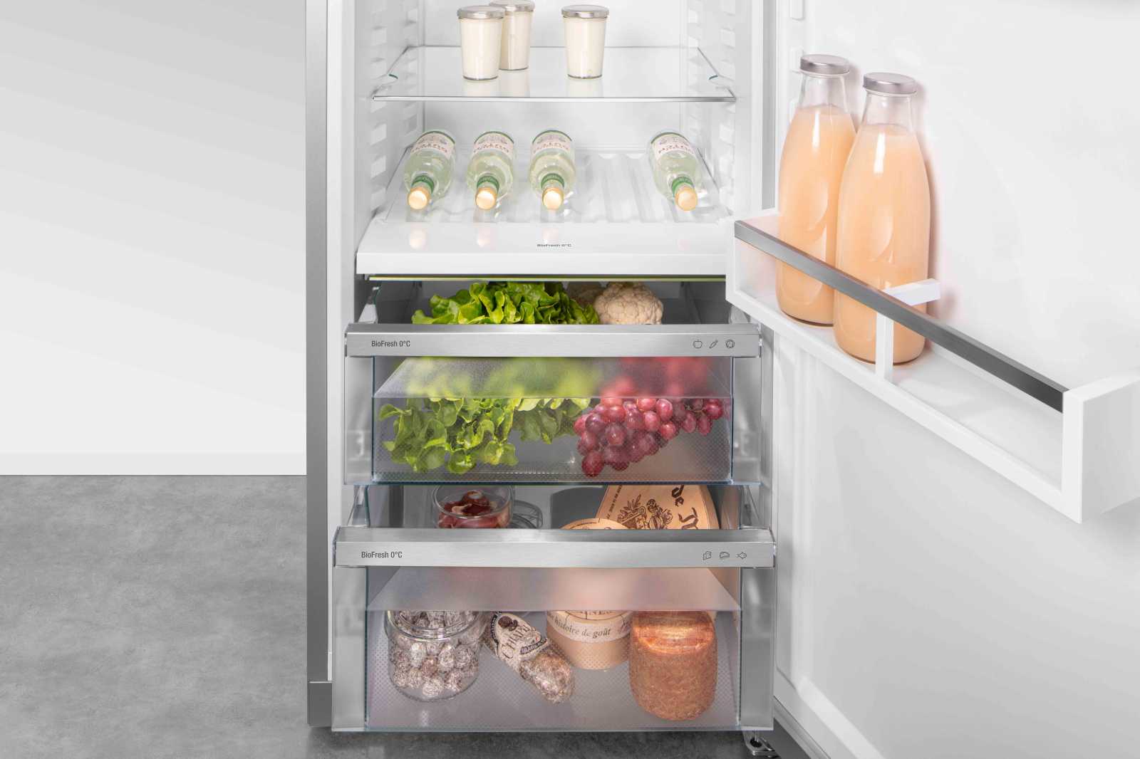 Обсяг холодильника становить 405 літрів, з яких 288 літрів припадає на холодильну камеру і 89 літрів - на зону BioFresh. Ця технологія дозволяє зберігати продукти свіжими вдвічі довше, що особливо важливо для фруктів та овочів.