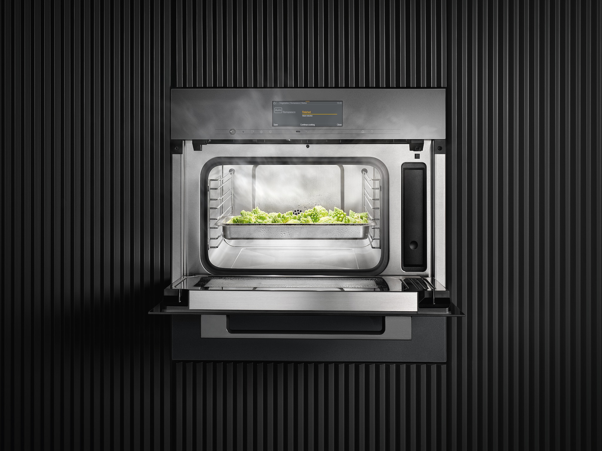 Мікрохвильова піч Miele DGM 7840 також пропонує функцію автоматичних програм, яка дозволяє вам без особливих зусиль готувати різноманітні страви. З її допомогою ви з легкістю зможете приготувати все: від сніданку до вечері. Прилад має потужність, що забезпечує рівномірне прогрівання продуктів, так що вам не доведеться турбуватися про «холодні» місця в стравах.