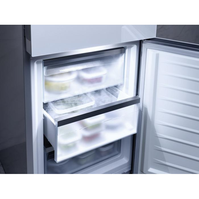 Крім того, модель має **LED освітлення** та функції **SuperFreezing** для швидкого заморожування. Вся продукція контролюється **датчиками FreshSense**, які підтримують стабільну температуру в холодильному та морозильному відділеннях. Наявність **висувної скляної полиці EasyAccess** спростить доступ до продуктів і забезпечить зручність під час завантаження.