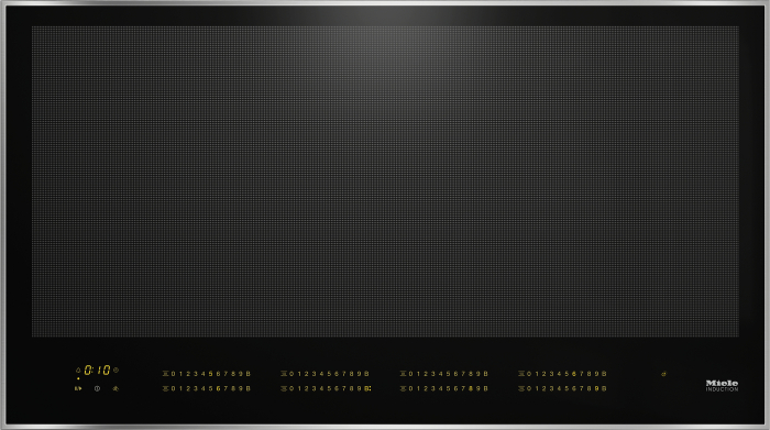 Індукційна варильна поверхня Miele KM 7697 FR - це високотехнологічний прилад для приготування їжі, що поєднує в собі передові розробки в галузі кулінарії та енергоефективності. Технологія FullSurface забезпечує можливість використання варильної поверхні на всій її площі, без заздалегідь визначених зон приготування, та розміщення посуду саме так, як вам зручно. Вбудована система інтелектуального розпізнавання посуду автоматично регулює рівень потужності в залежності від розташування посуду, що забезпечує ефективне використання енергії.