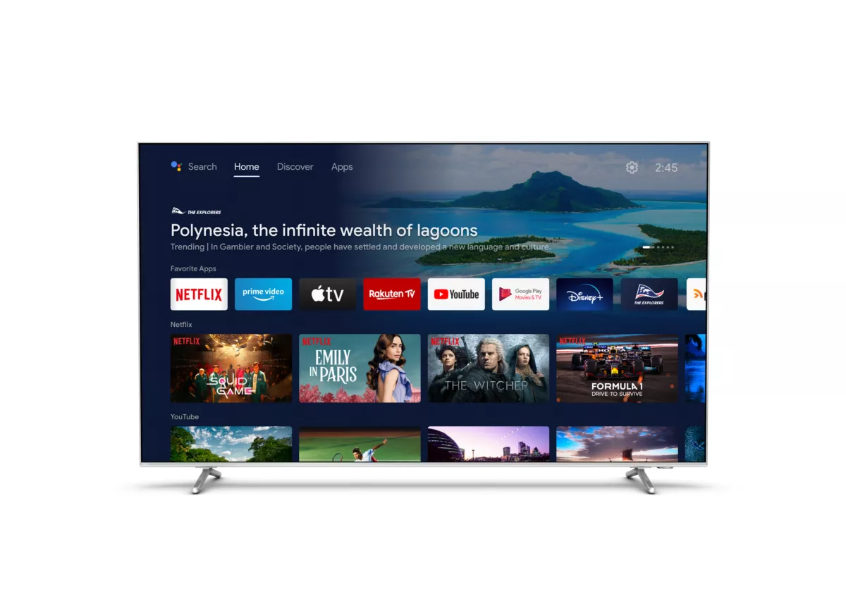 Операційна система Android TV дозволить насолоджуватися улюбленими контентом, а вбудований Google Assistant та сумісність з Alexa забезпечать зручне керування телевізором та підключеними пристроями за допомогою голосу.